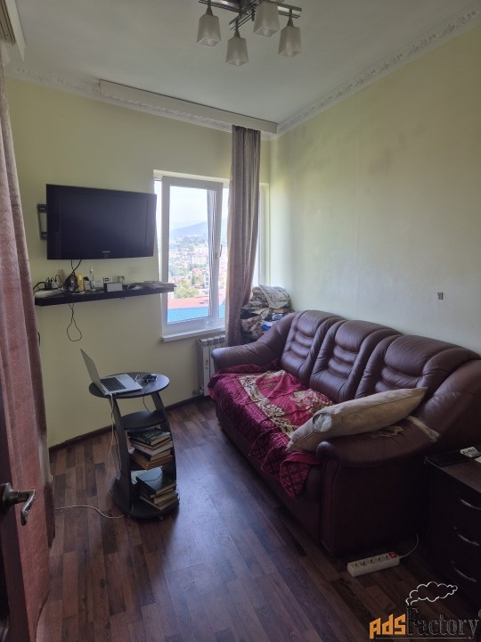 Полноценная двушка, малогабаритная. Две отдельные, изолированные комнаты. Довольно, большая кухня с окном. Есть застеклённая лоджия, с видом на горы и море. Дом образцового содержания, просто утопает в зелени. Своя закрытая территория, с парковкой и детской площадкой. Видеонаблюдение по всему периметру дома, внутри и в лифте. Есть газ. Комуналка не дорогая. В квартире установлен свой газовый котёл. Есть резервый электро-котёл. Остальные коммуникации центральные. Управляют домом сами жильцы, не переплачивая УК. Здание расположено в микрорайоне Светлана. Рядом магазин и остановка. Школа в двух остановка, да и пешком не далеко. Очень популярный микрорайон как среди местных жителей, так и приезжих.