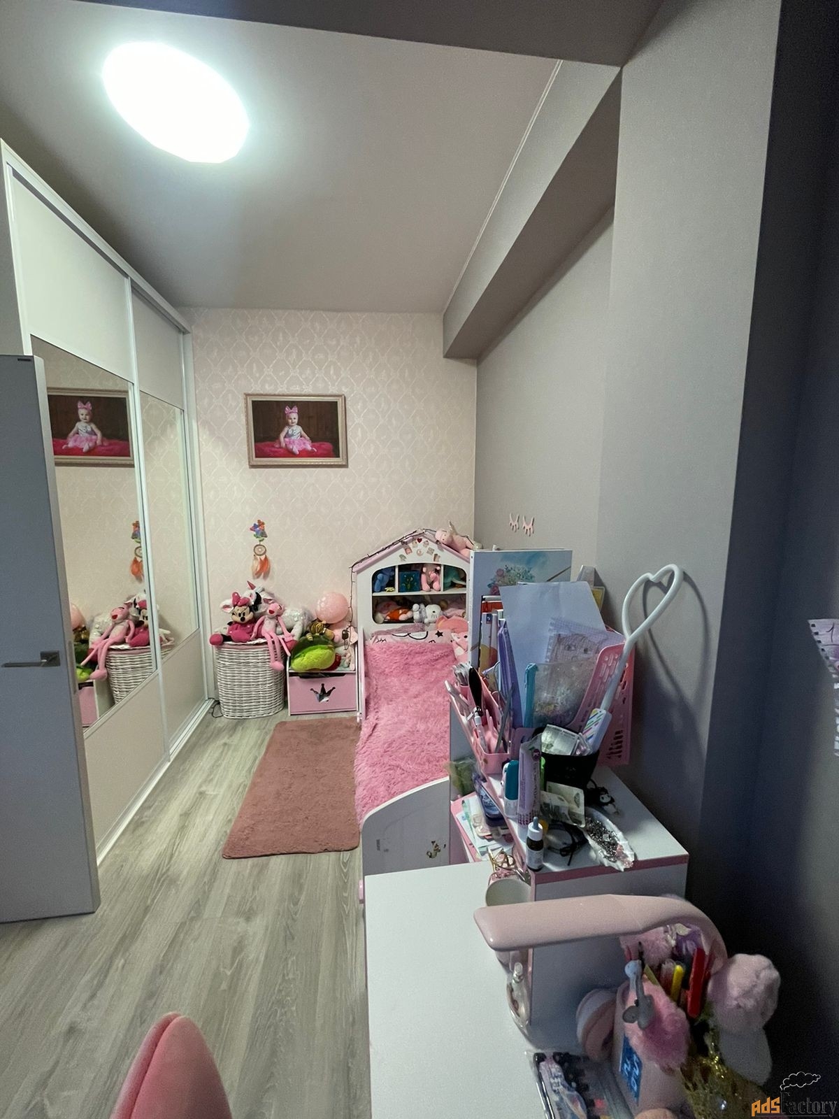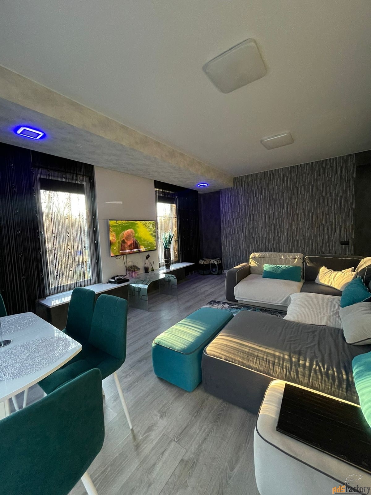 90 кв.м., 3 комнаты, большая ванная комната и гардеробная.