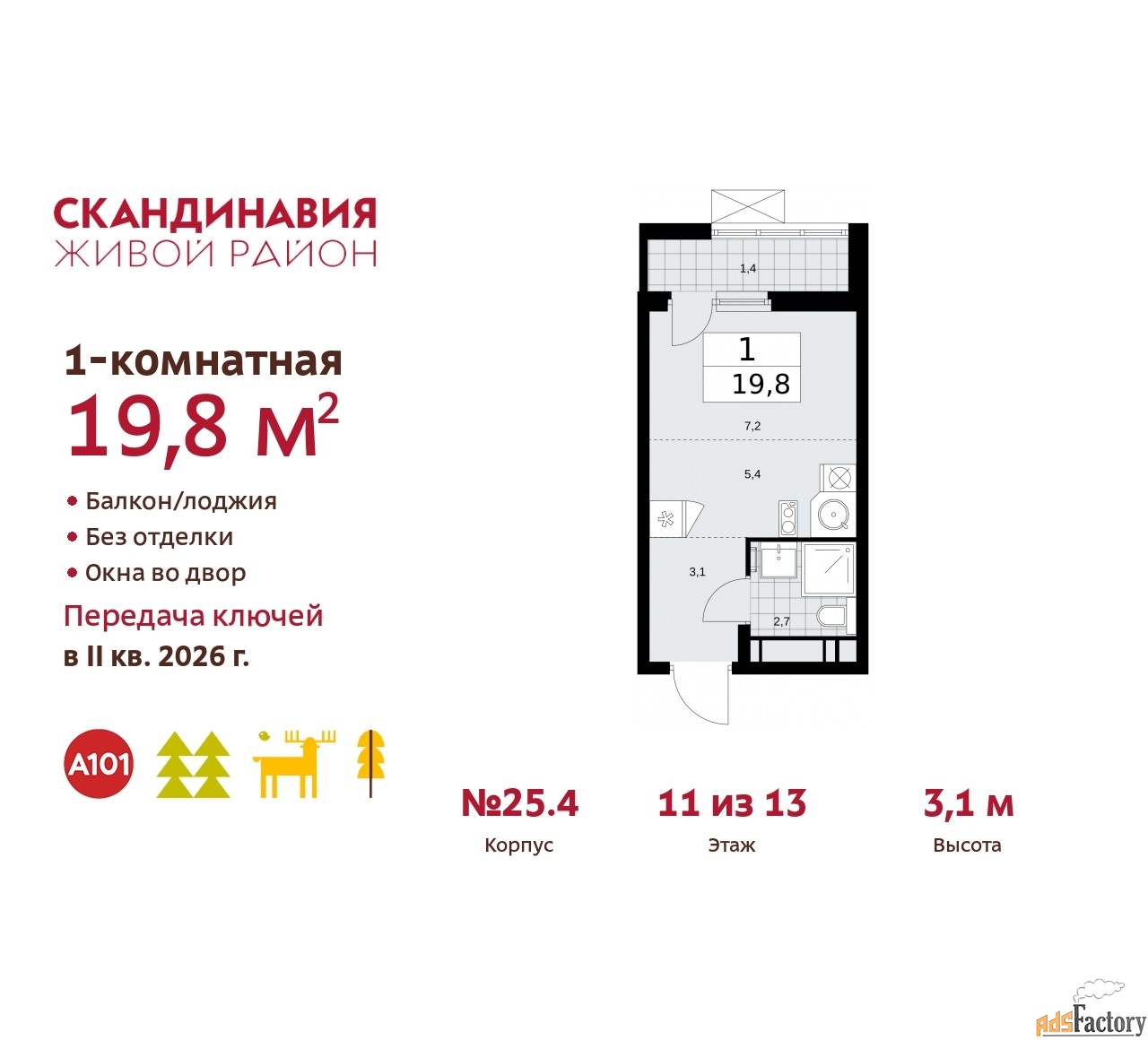 В пешей доступности находятся школы, детские сады, магазины, кафе, поликлиника, спортивная школа, отделение почты, дом культуры и пр. объекты инфраструктуры. ЖК «Скандинавия» находится в 15-минутной доступности до 3 веток метро. Автомобилисты могут воспользоваться выездом на Калужское шоссе (4,7 км). (AQID02284230)