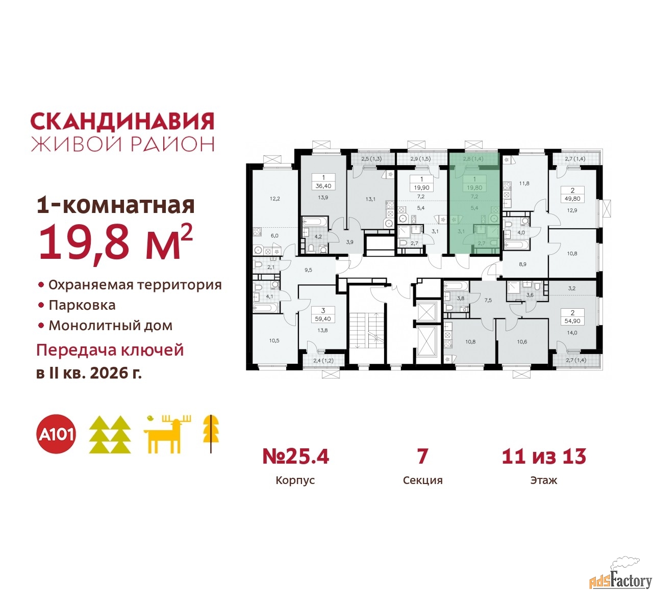 Микрорайон возводится в уже сложившемся районе Новой Москвы, где для детей уже построены детские сады и школа, а для взрослых работают магазины, банки и кафе. (AQID02284230)