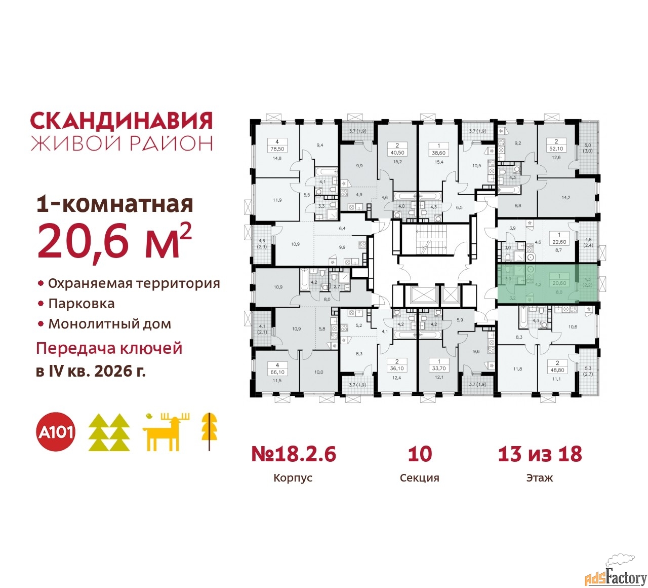 Артикул квартиры по базе застройщика 23К-18.2.6-775.