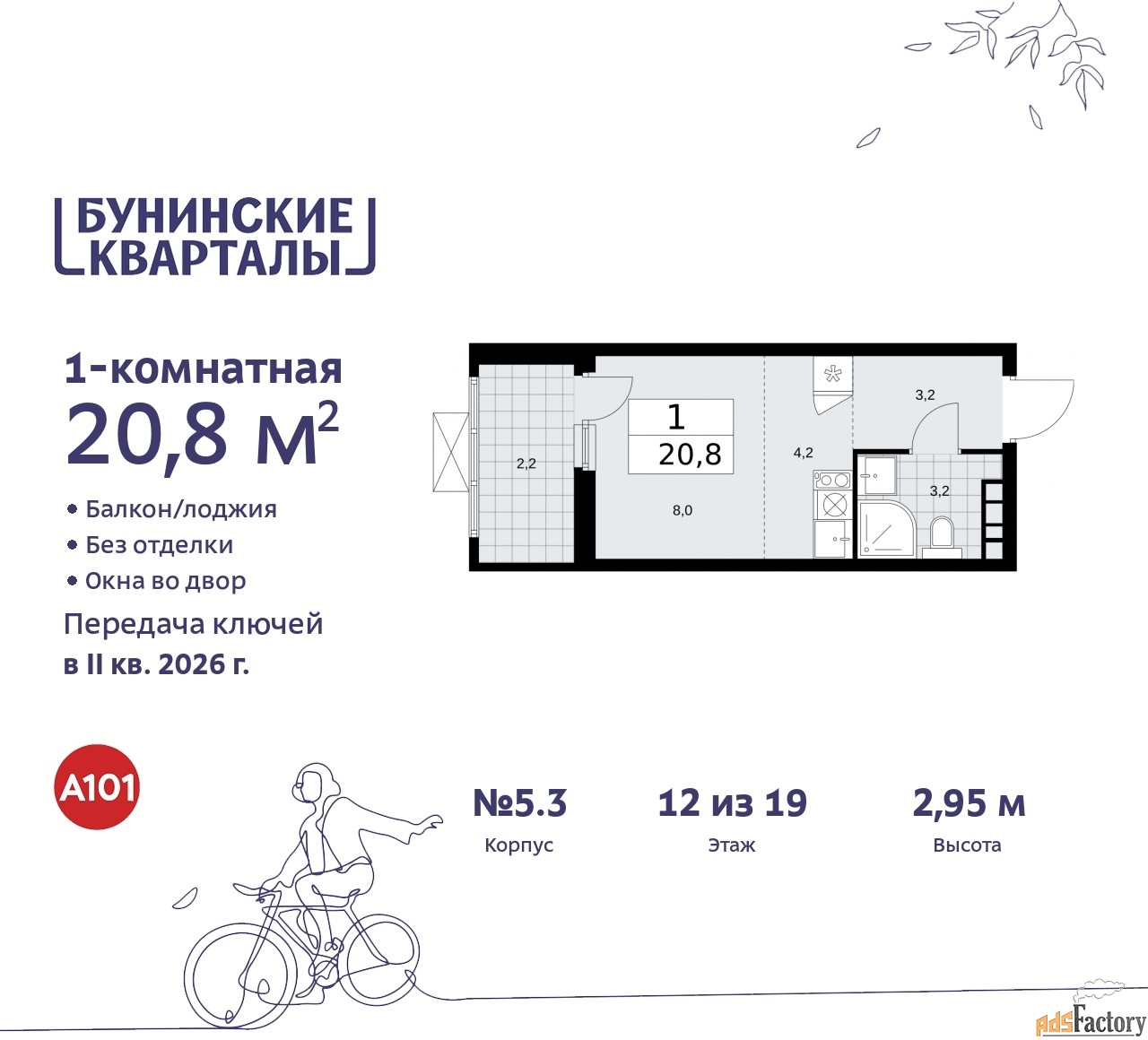 Квартира находится в корпусе 5.3. Дом монолитный, одноподъездный, высотой 19 этажей. На этаже 10 квартир. В подъезде 1 пассажирский и 1 грузовой лифт. Начало строительства - 4 квартал 2023 года. Окончание строительства - 2 квартал 2026 года. Оформление сделки по договору долевого участия.