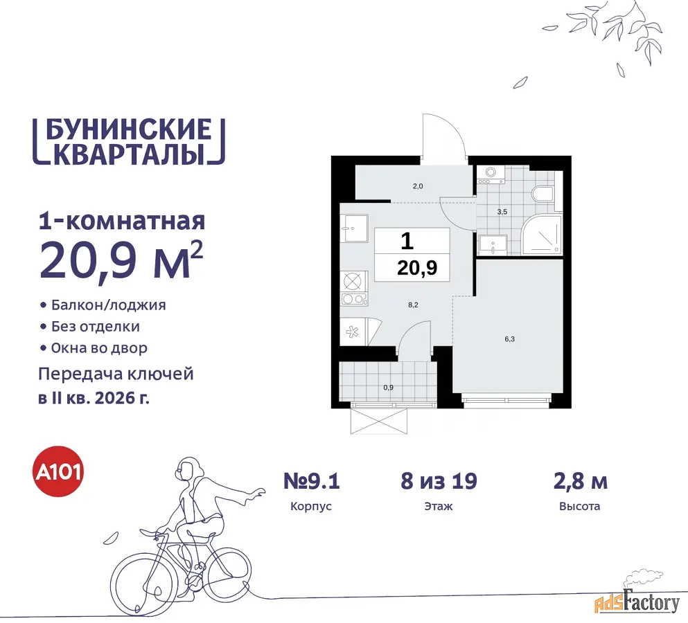 Дом монолитный, многоподъездный, переменной этажности, от 9 до 19 этажей. Квартира находится в 4-й секции высотой 9 этажей в корпусе 9.1. На этаже 8 квартир. В подъезде 1 грузовой лифт. Начало строительства - 4 квартал 2023 года. Окончание строительства - 2 квартал 2026 года. Оформление сделки по договору долевого участия.
