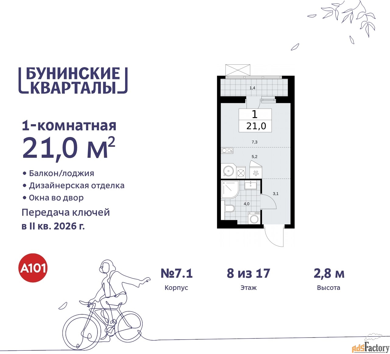 Дом монолитный, многоподъездный, переменной этажности, от 9 до 17 этажей. Квартира находится в 1-й секции высотой 9 этажей в корпусе 7.1. На этаже 6 квартир. В подъезде 1 грузовой лифт. Начало строительства - 4 квартал 2023 года. Окончание строительства - 2 квартал 2026 года. Оформление сделки по договору долевого участия.