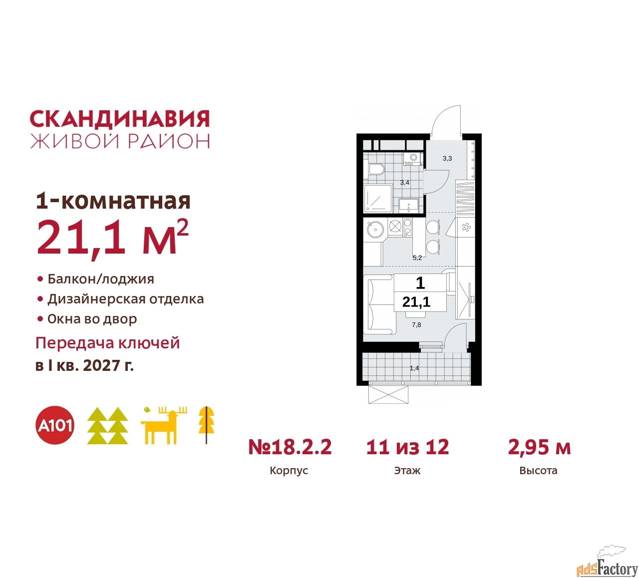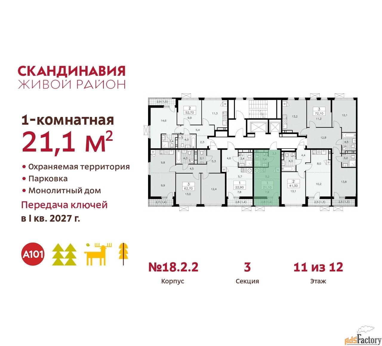 Артикул квартиры по базе застройщика 23К-18.2.2-187.