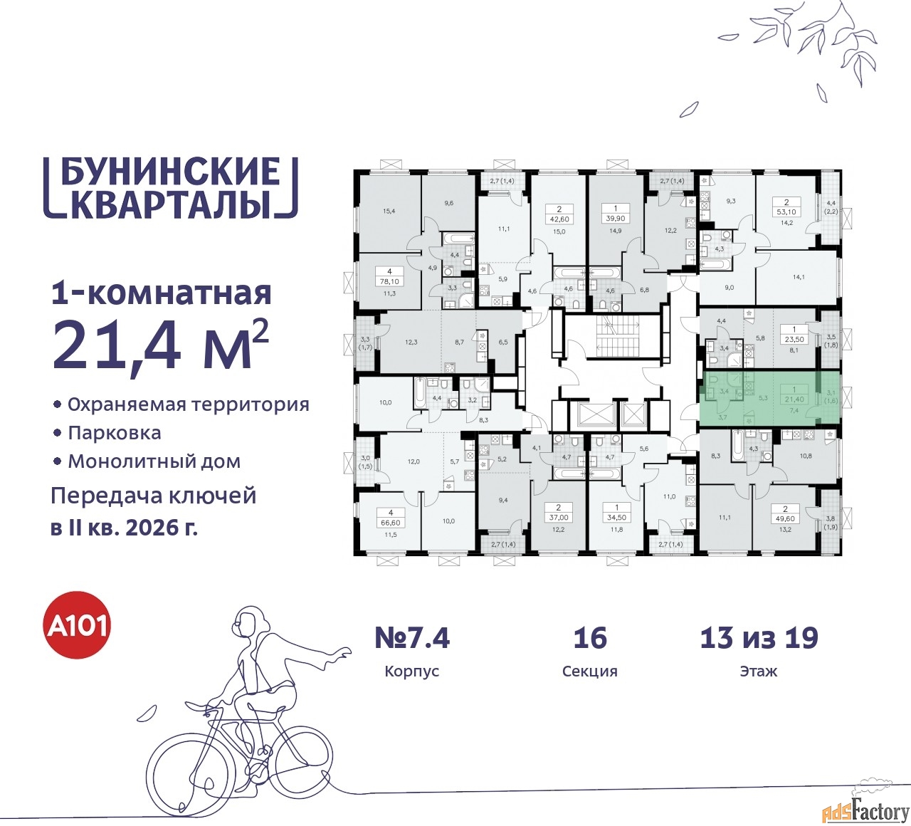 Квартира находится в корпусе 7.4. Дом монолитный, одноподъездный, высотой 19 этажей. На этаже 10 квартир. В подъезде 1 пассажирский и 1 грузовой лифт. Начало строительства - 4 квартал 2023 года. Окончание строительства - 2 квартал 2026 года. Оформление сделки по договору долевого участия.
