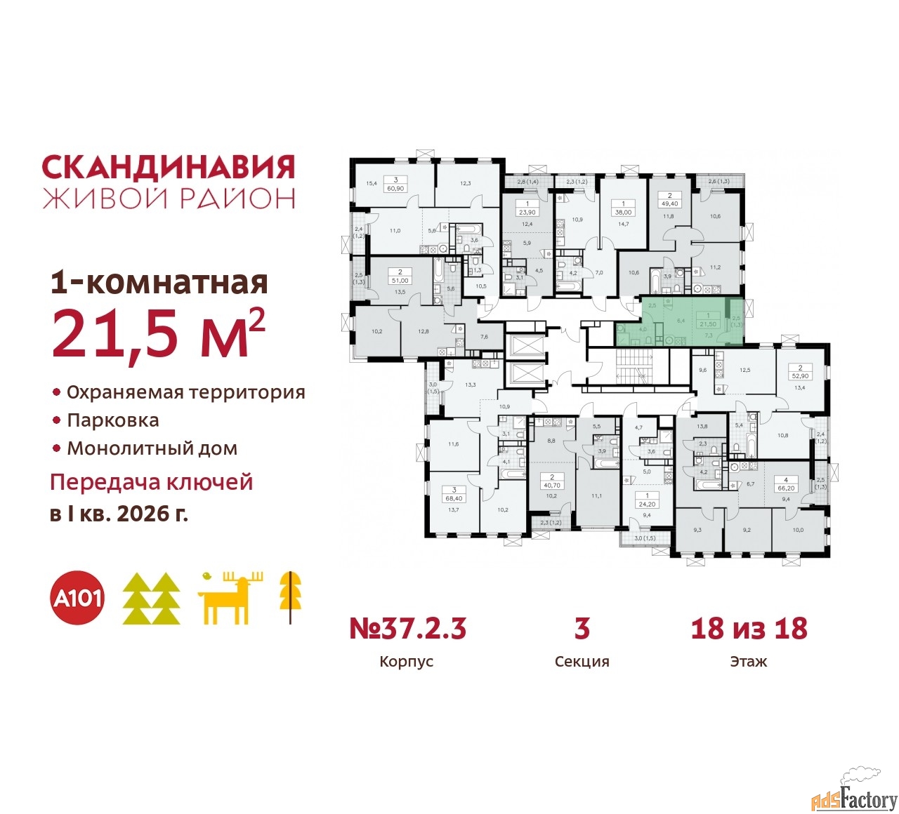Квартира находится в корпусе 37.2.3. Дом монолитный, одноподъездный, высотой 18 этажей. На этаже 11 квартир. В подъезде 2 грузовых лифта. Начало строительства - 3 квартал 2023 года. Окончание строительства - 1 квартал 2026 года. Оформление сделки по договору долевого участия.