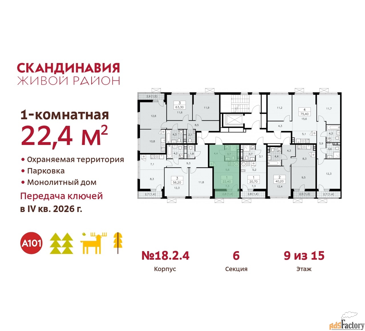 Артикул квартиры по базе застройщика 23К-18.2.4-479.