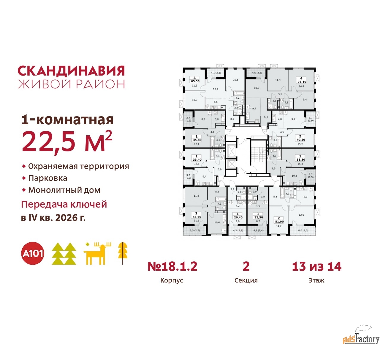 Артикул квартиры по базе застройщика 23К-18.1.2-161.