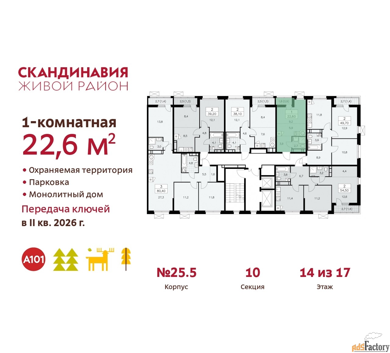 В пешей доступности находятся школы, детские сады, магазины, кафе, поликлиника, спортивная школа, отделение почты, дом культуры и пр. объекты инфраструктуры. ЖК «Скандинавия» находится в 15-минутной доступности до 3 веток метро. Автомобилисты могут воспользоваться выездом на Калужское шоссе (4,7 км). (AQID02283832)