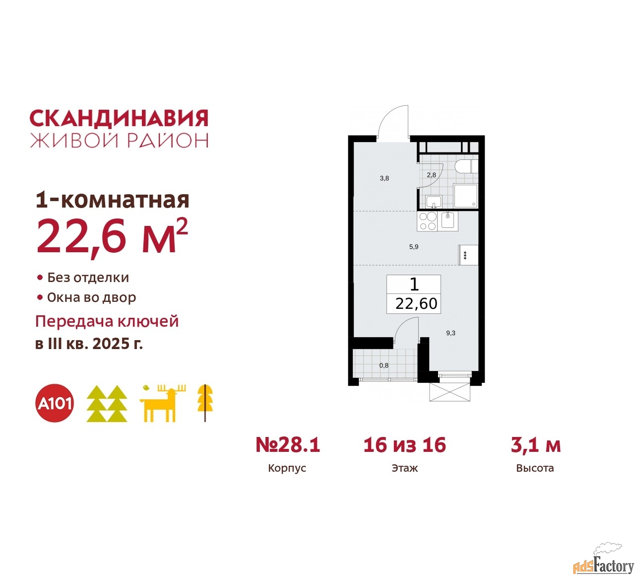 | Общая площадь (кв.м) | 22.6 |