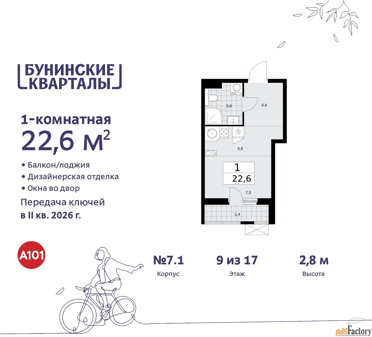 Дом монолитный, многоподъездный, переменной этажности, от 9 до 17 этажей. Квартира находится в 7-й секции высотой 9 этажей в корпусе 7.1. На этаже 6 квартир. В подъезде 1 грузовой лифт. Начало строительства - 4 квартал 2023 года. Окончание строительства - 2 квартал 2026 года. Оформление сделки по договору долевого участия.