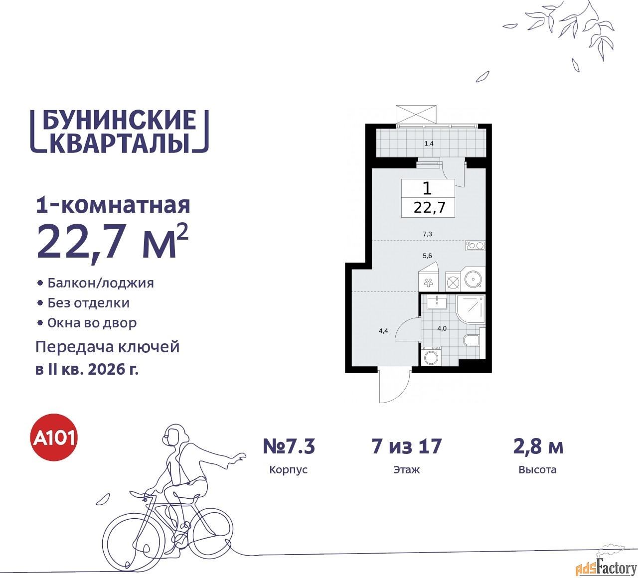 Дом монолитный, многоподъездный, переменной этажности, от 9 до 17 этажей. Квартира находится в 1-й секции высотой 9 этажей в корпусе 7.3. На этаже 6 квартир. В подъезде 1 грузовой лифт. Начало строительства - 4 квартал 2023 года. Окончание строительства - 2 квартал 2026 года. Оформление сделки по договору долевого участия.