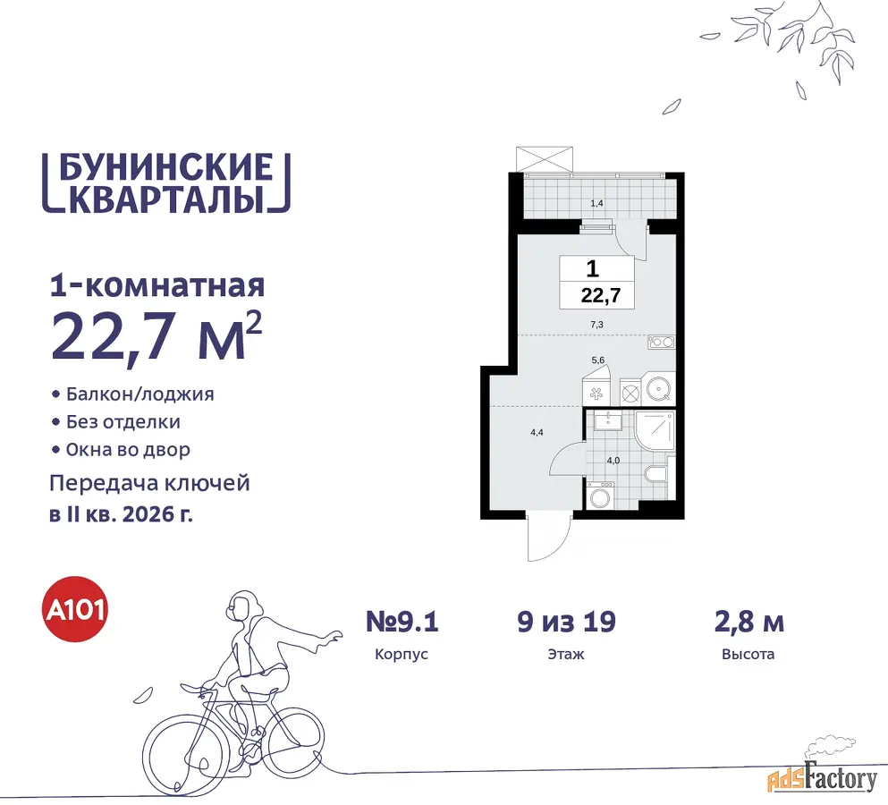 Дом монолитный, многоподъездный, переменной этажности, от 9 до 19 этажей. Квартира находится в 1-й секции высотой 9 этажей в корпусе 9.1. На этаже 6 квартир. В подъезде 1 грузовой лифт. Начало строительства - 4 квартал 2023 года. Окончание строительства - 2 квартал 2026 года. Оформление сделки по договору долевого участия.