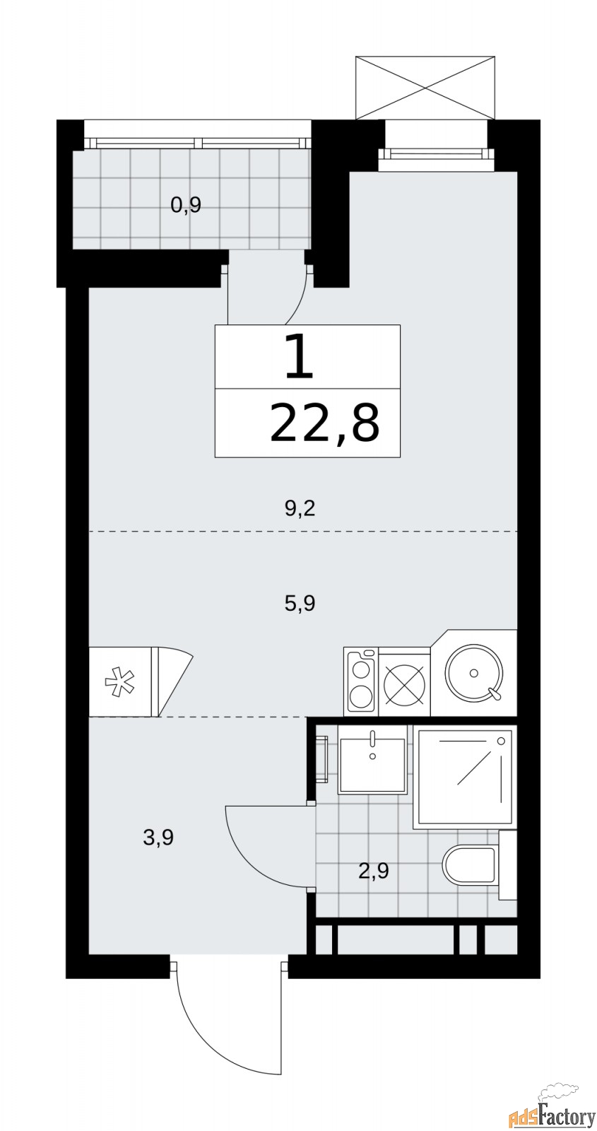 | Общая площадь (кв.м) | 22.8 |