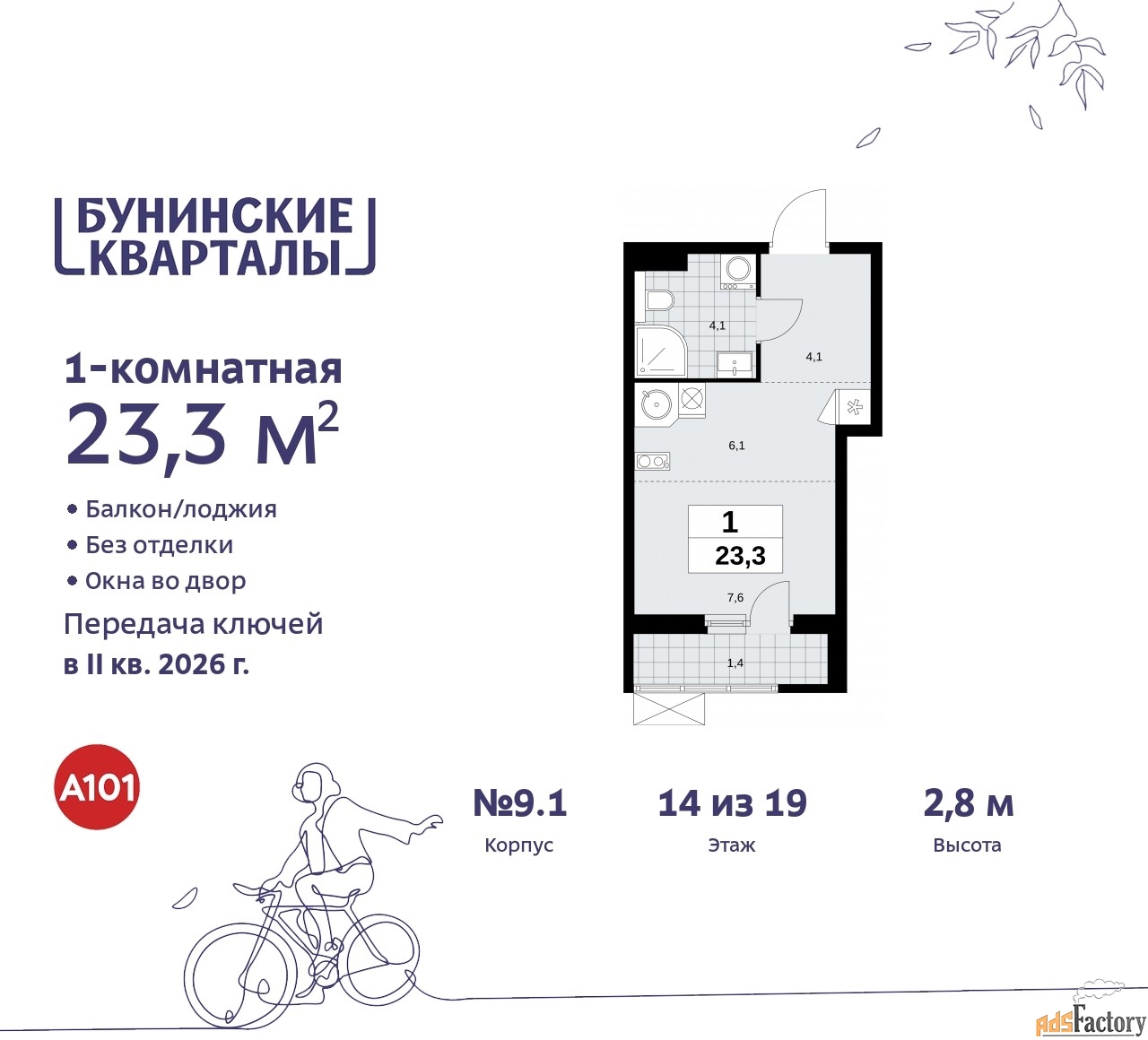 Дом монолитный, многоподъездный, переменной этажности, от 9 до 19 этажей. Квартира находится в 7-й секции высотой 19 этажей в корпусе 9.1. На этаже 6 квартир. В подъезде 1 пассажирский и 1 грузовой лифт. Начало строительства - 4 квартал 2023 года. Окончание строительства - 2 квартал 2026 года. Оформление сделки по договору долевого участия.