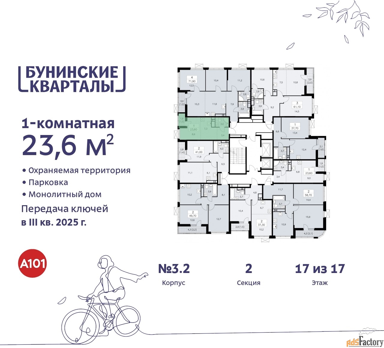 Квартира находится в корпусе 3.2. Дом монолитный, одноподъездный, высотой 17 этажей. На этаже 9 квартир. В подъезде 1 пассажирский и 1 грузовой лифт. Начало строительства - 2 квартал 2023 года. В настоящее время строительство завершено, дом сдан в 3 квартале 2025 года. Оформление сделки по договору купли-продажи.