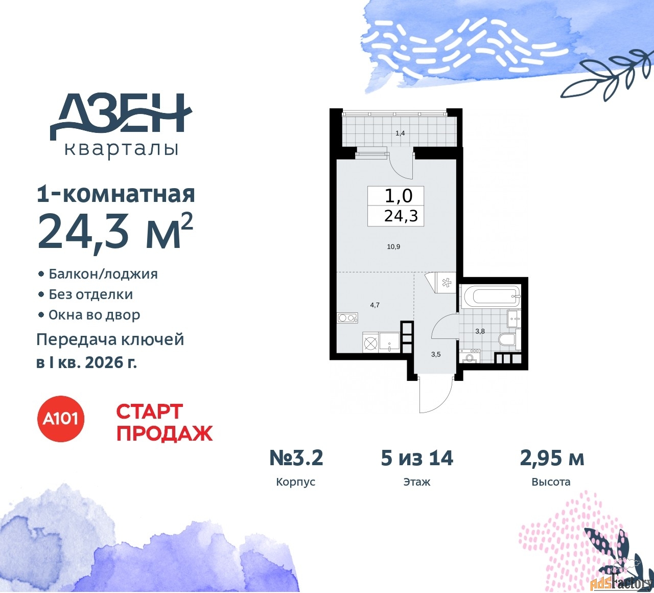 | Общая площадь (кв.м) | 24.3 |