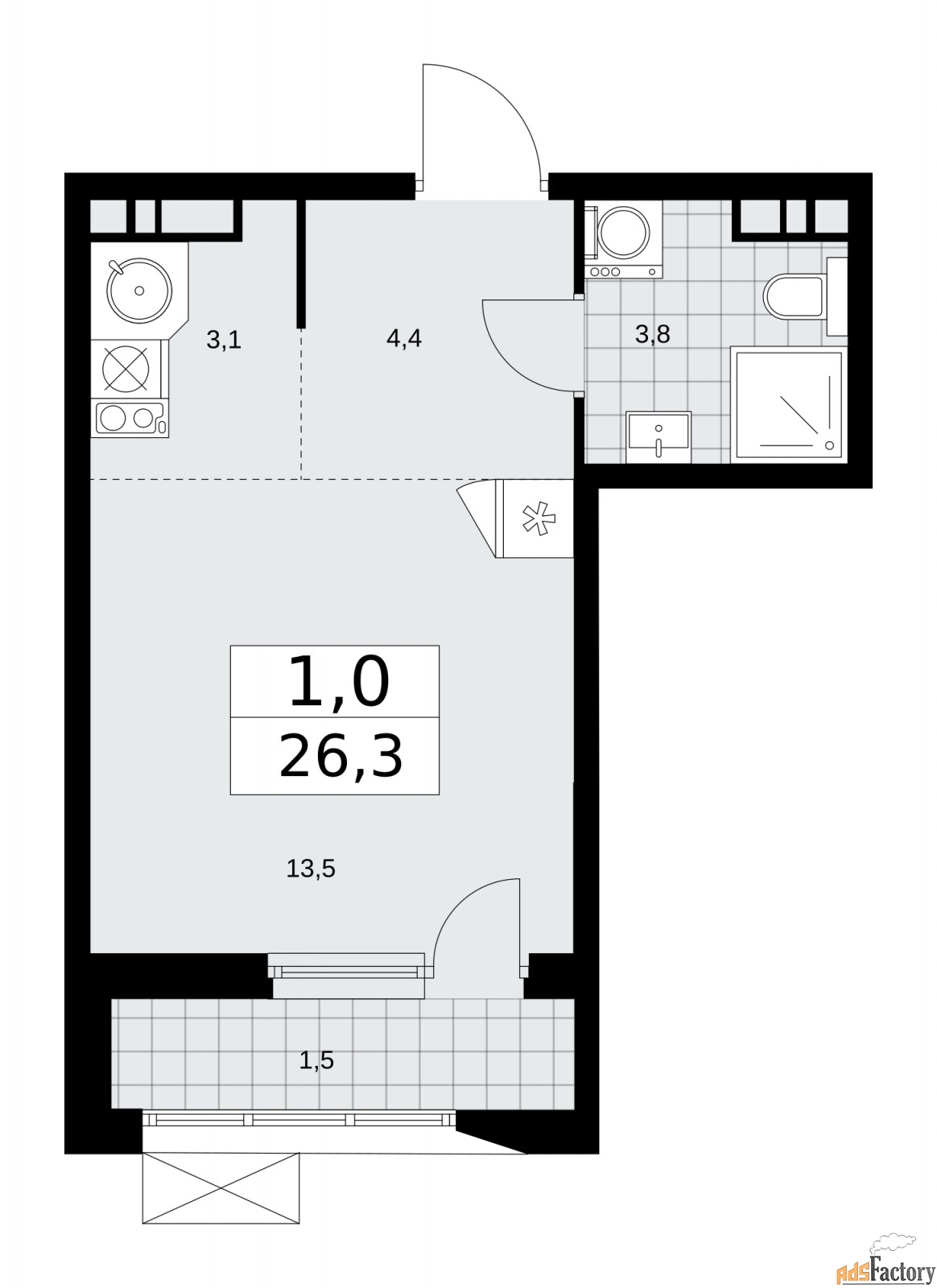 | Общая площадь (кв.м) | 26.3 |