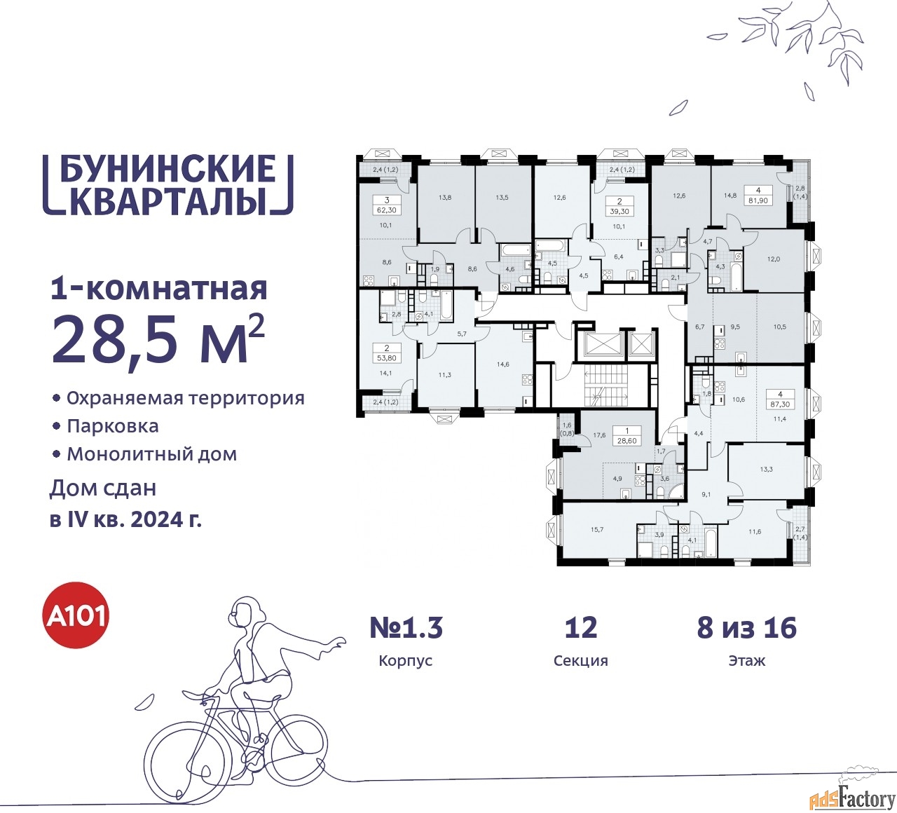 | Общая площадь (кв.м) | 28.5 |
