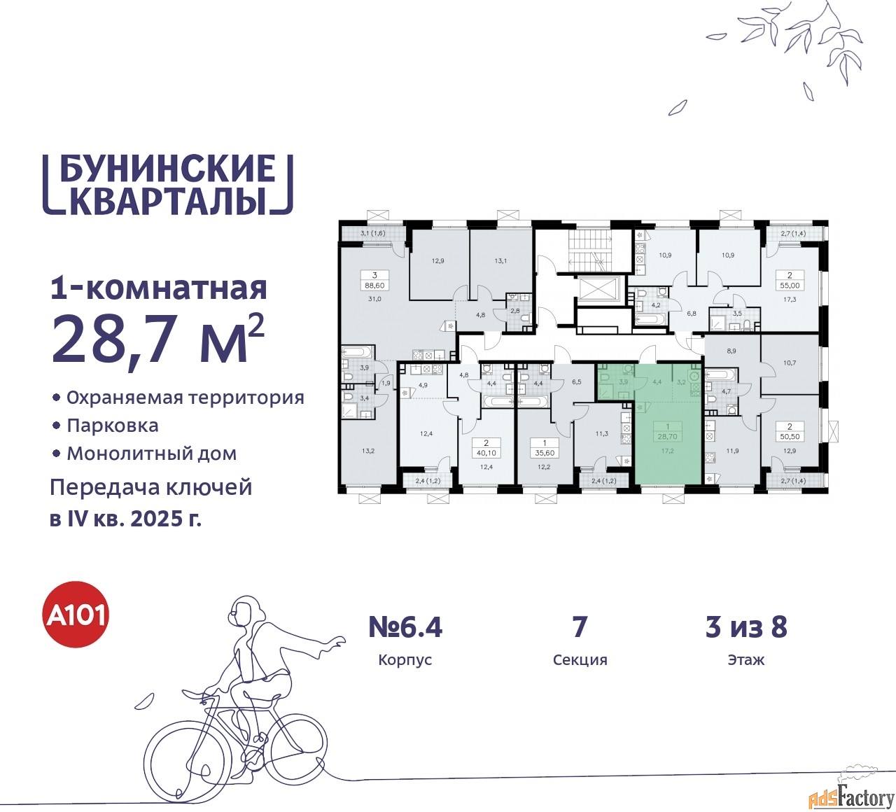 Дом монолитный, двухподъездный, высотой 8 этажей. Квартира находится во 2-й секции в корпусе бизнес-класса 6.4. На этаже 6 квартир. В подъезде 1 грузовой лифт. Начало строительства - 3 квартал 2023 года. Окончание строительства - 4 квартал 2025 года. Оформление сделки по договору долевого участия.