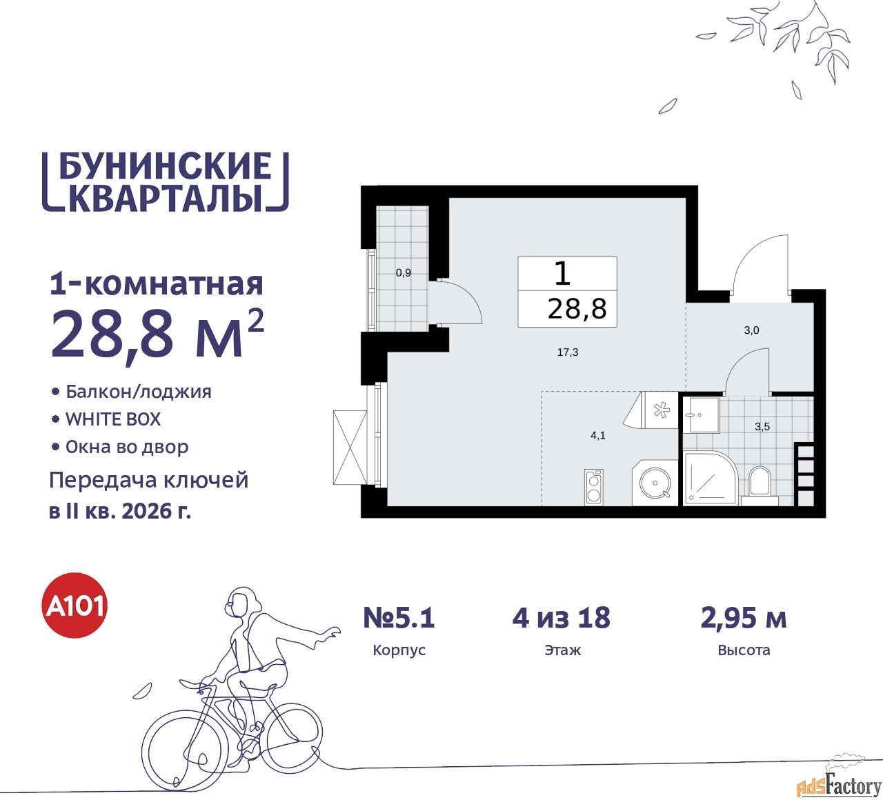 Дом монолитный, многоподъездный, переменной этажности, от 9 до 18 этажей. Квартира находится в 5-й секции высотой 9 этажей в корпусе 5.1. На этаже 8 квартир. В подъезде 1 грузовой лифт. Начало строительства - 4 квартал 2023 года. Окончание строительства - 2 квартал 2026 года. Оформление сделки по договору долевого участия.