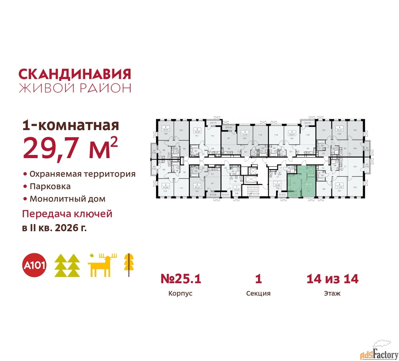 Квартира находится в корпусе 2.25.1. Дом монолитный, одноподъездный, высотой 14 этажей. На этаже 11 квартир. В подъезде 1 пассажирский и 1 грузовой лифт. Начало строительства - 4 квартал 2023 года. Окончание строительства - 2 квартал 2026 года. Оформление сделки по договору долевого участия.