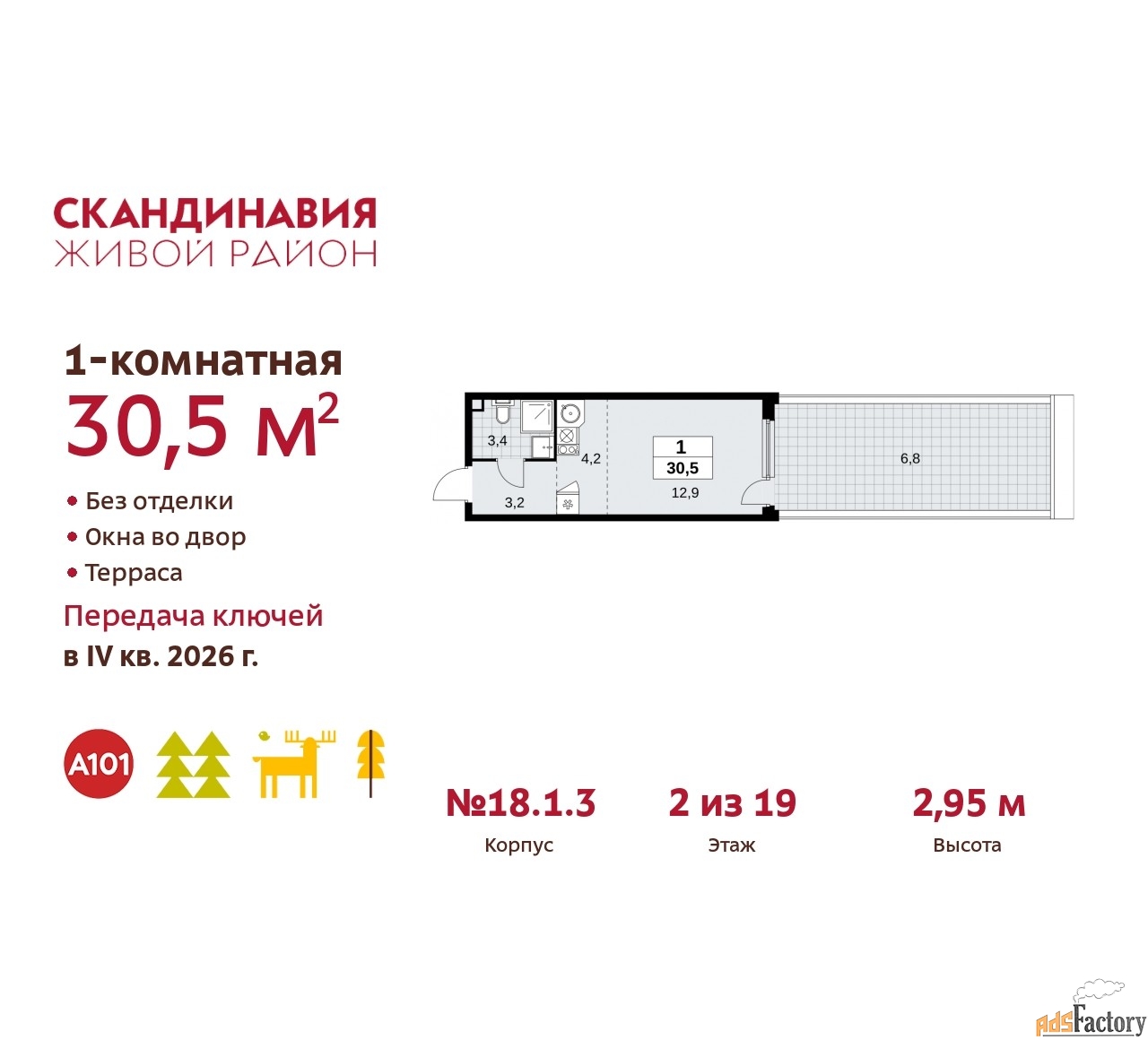 Квартира находится в корпусе 2.18.1.3. Дом монолитный, одноподъездный, высотой 19 этажей. На этаже 10 квартир. В подъезде 1 пассажирский и 1 грузовой лифт. Начало строительства - 1 квартал 2024 года. Окончание строительства - 4 квартал 2026 года. Оформление сделки по договору долевого участия.
