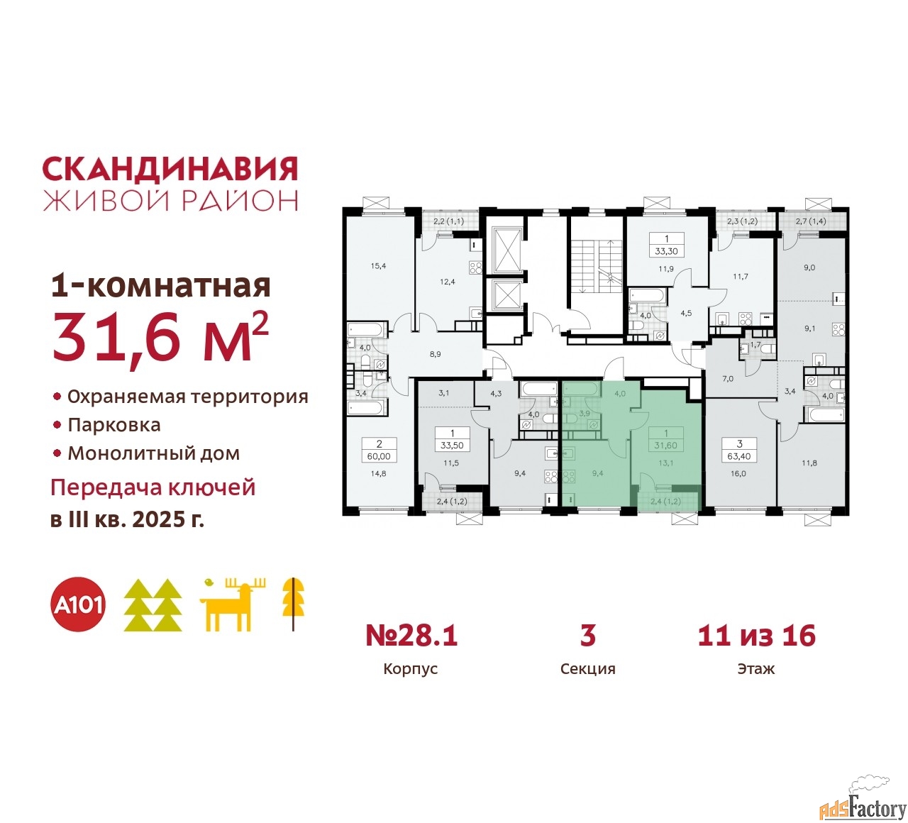 ЖК «Скандинавия» - один из проектов компании А101, известной своей надежностью. Жилой комплекс расположен на юго-западе Москвы в 6-ти километрах от МКАД в окружении Бутовского лесопарка, район Коммунарка. Рядом открылись новые станции метро.