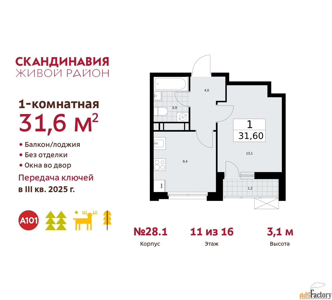 | Общая площадь (кв.м) | 31.6 |