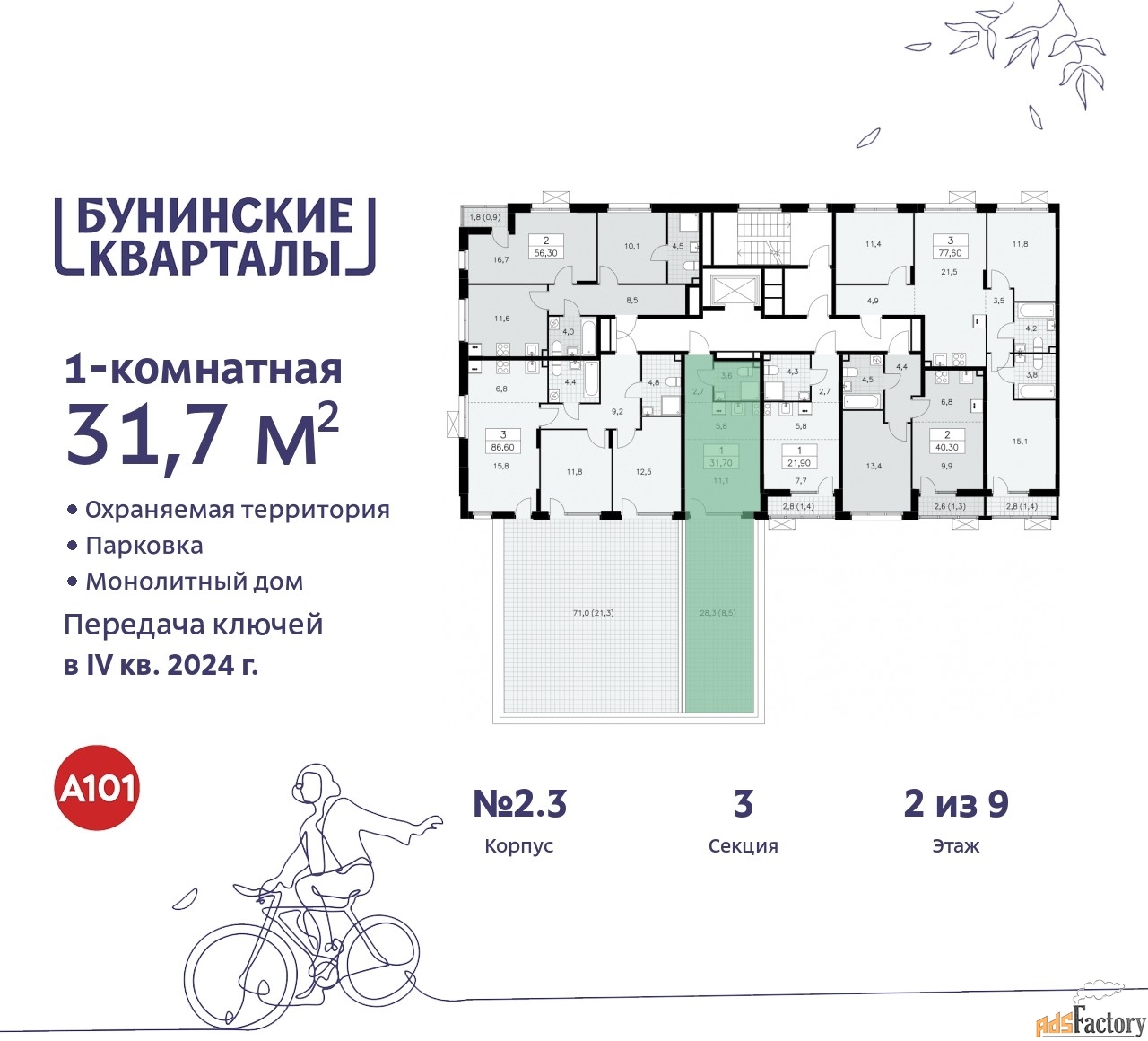 Продается однокомнатная квартира-студия в ЖК «Бунинские кварталы» на 2 этаже. Квартира без отделки, полностью готова к ремонту. Общая площадь: 31.6 кв.м. Наличие террасы в квартире дает возможность для обустройства дополнительной площади. Высота потолков 2.99 м.