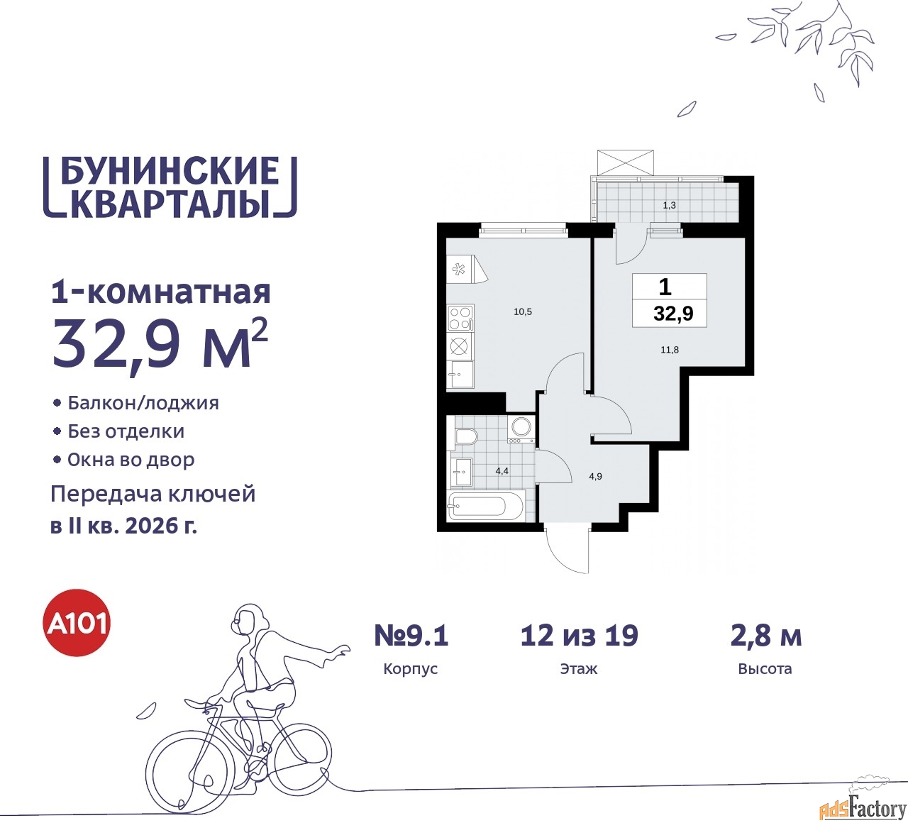 | Общая площадь (кв.м) | 32.9 |