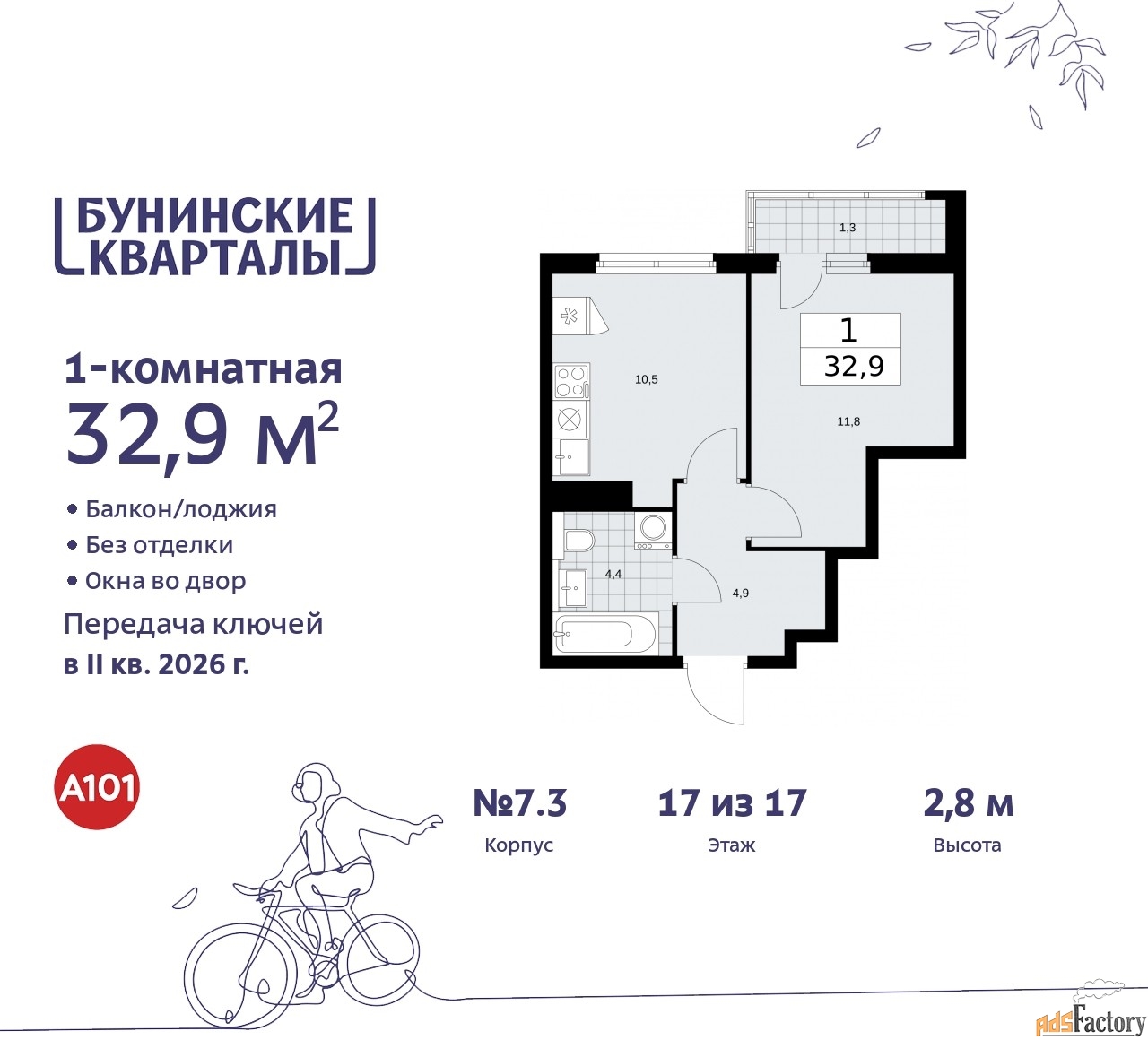 Дом монолитный, многоподъездный, переменной этажности, от 9 до 17 этажей. Квартира находится во 2-й секции высотой 17 этажей в корпусе 7.3. На этаже 7 квартир. В подъезде 1 пассажирский и 1 грузовой лифт. Начало строительства - 4 квартал 2023 года. Окончание строительства - 2 квартал 2026 года. Оформление сделки по договору долевого участия.