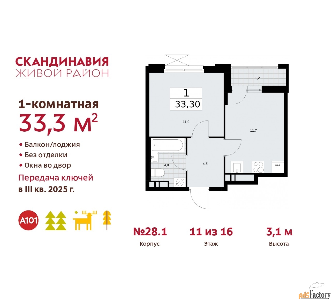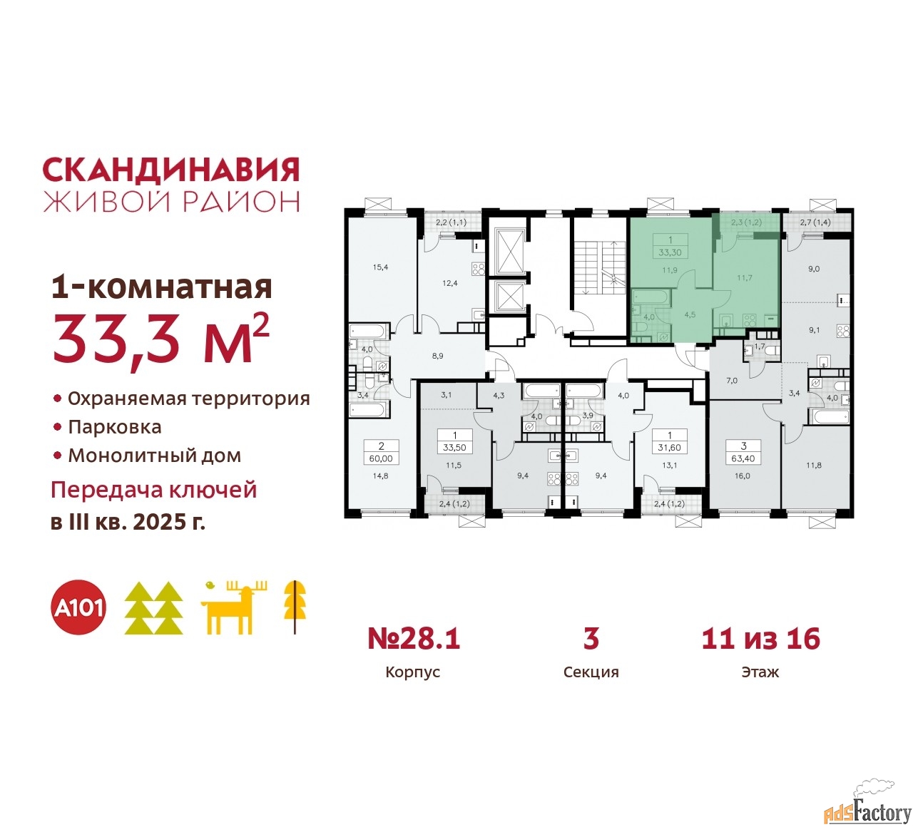 Артикул квартиры по базе застройщика 24К-28.1-211.