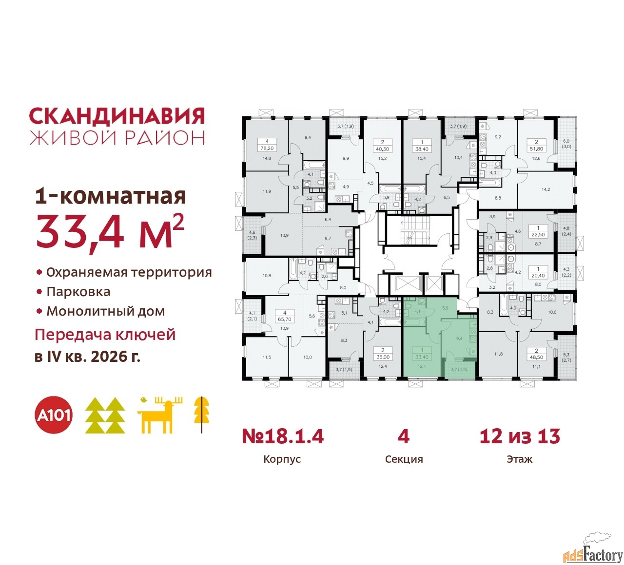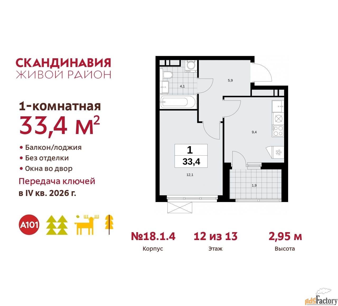 | Общая площадь (кв.м) | 33.4 |