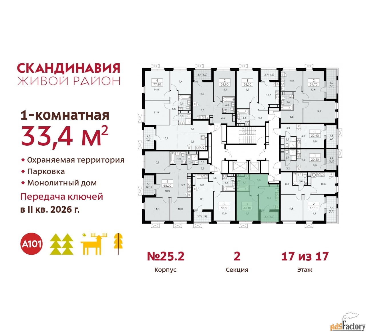 Квартира находится в корпусе 2.25.2. Дом монолитный, одноподъездный, высотой 17 этажей. На этаже 10 квартир. В подъезде 1 пассажирский и 1 грузовой лифт. Начало строительства - 4 квартал 2023 года. Окончание строительства - 2 квартал 2026 года. Оформление сделки по договору долевого участия.