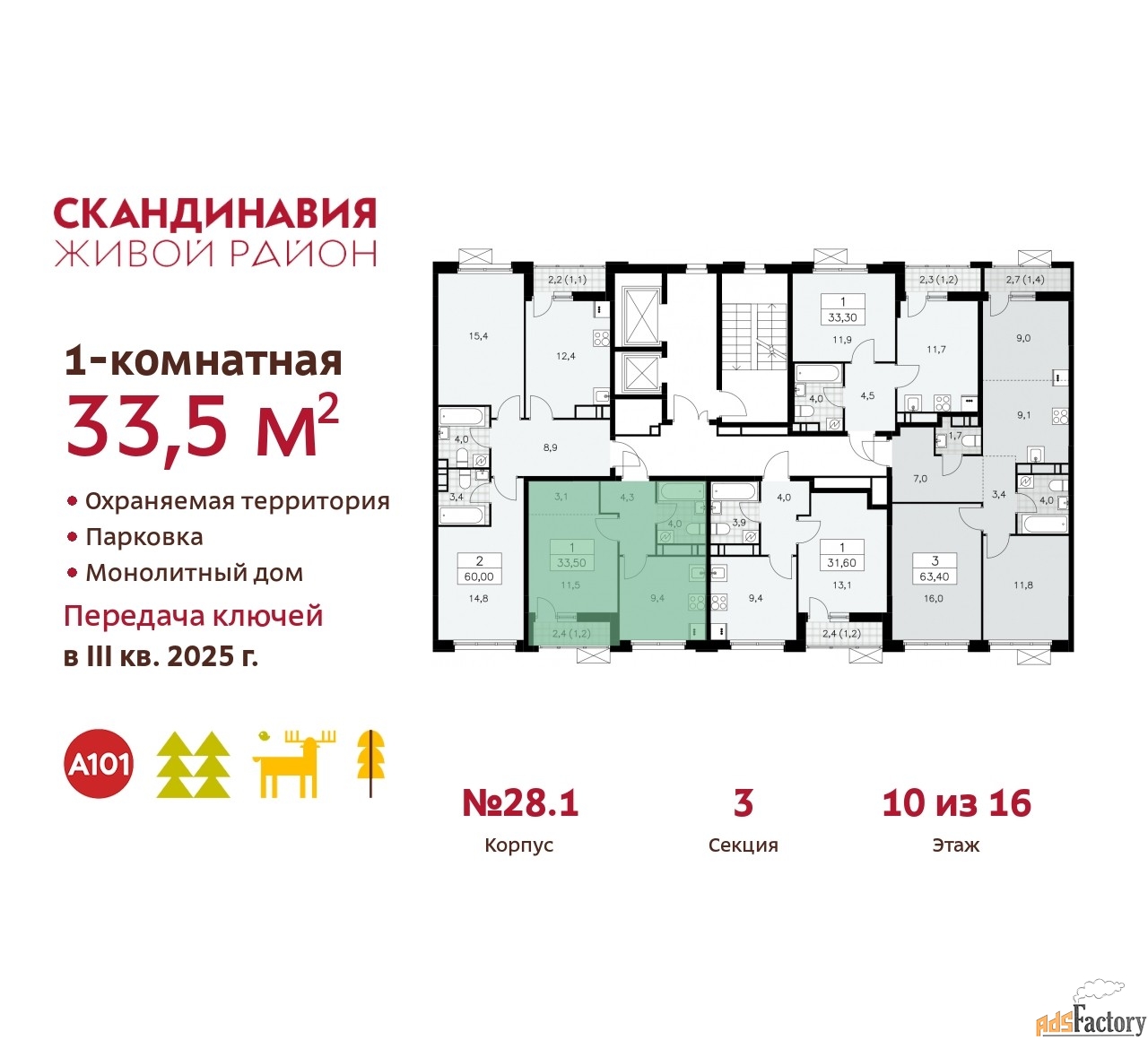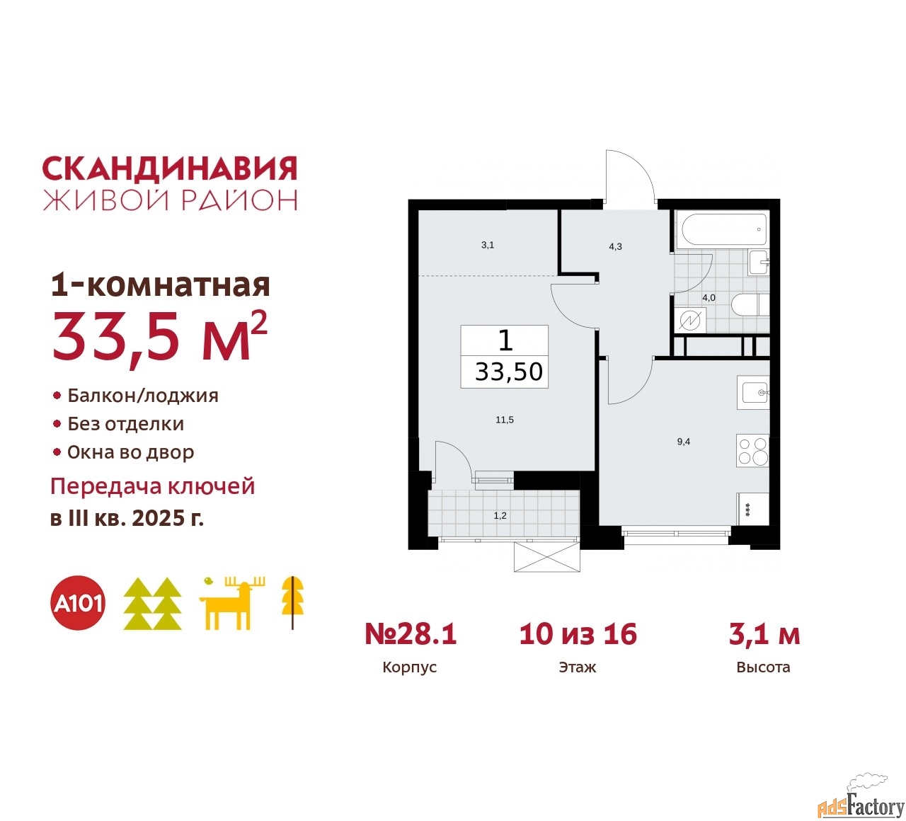 | Общая площадь (кв.м) | 33.5 |