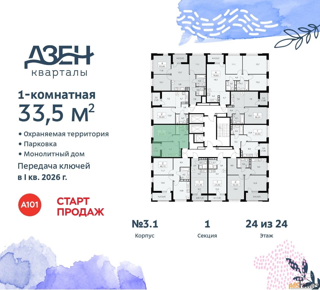 Квартира находится в корпусе 3.1. Дом монолитный, одноподъездный, высотой 24 этажа. На этаже 10 квартир. В подъезде 1 пассажирский и 2 грузовых лифта. Начало строительства - 3 квартал 2023 года. Окончание строительства - 1 квартал 2026 года. Оформление сделки по договору долевого участия.