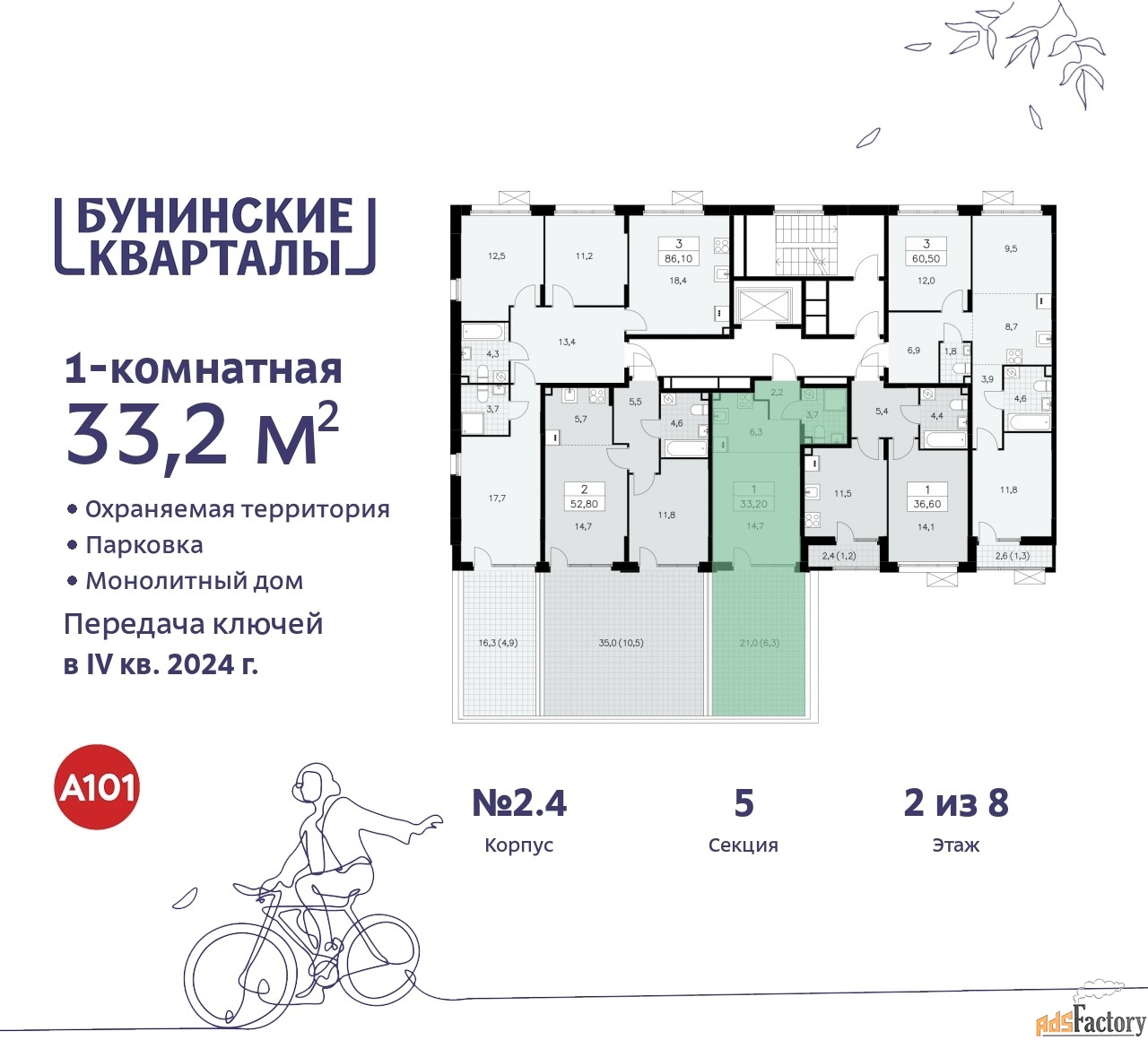 Артикул квартиры по базе застройщика 14К-2.4-301.