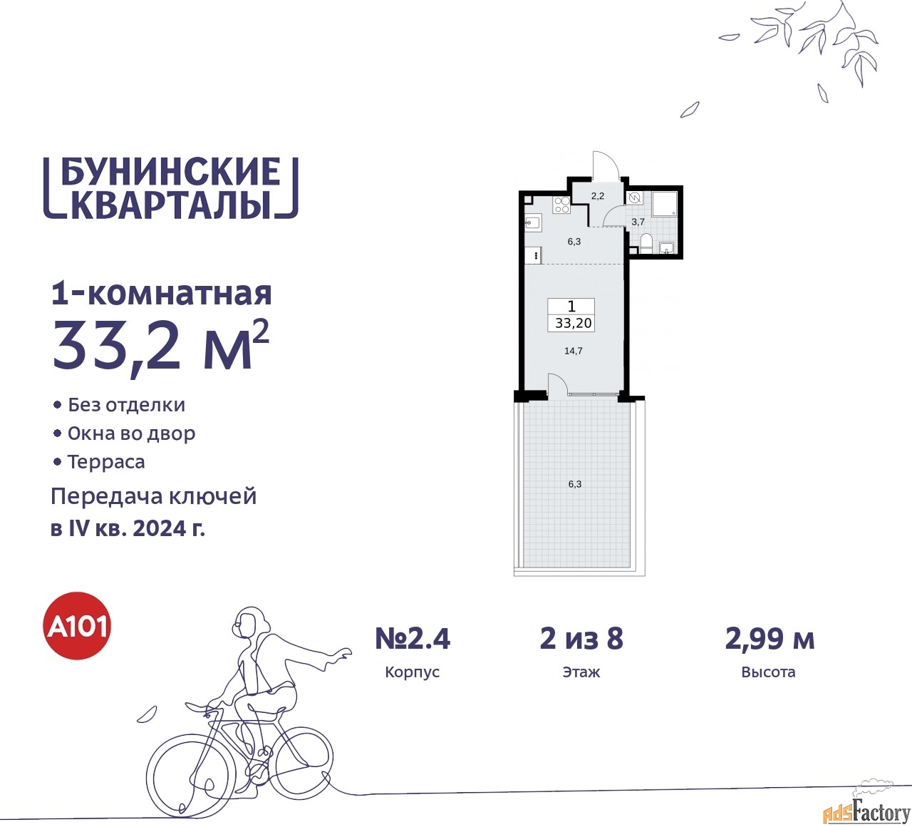 Артикул квартиры по базе застройщика 14К-2.4-301.