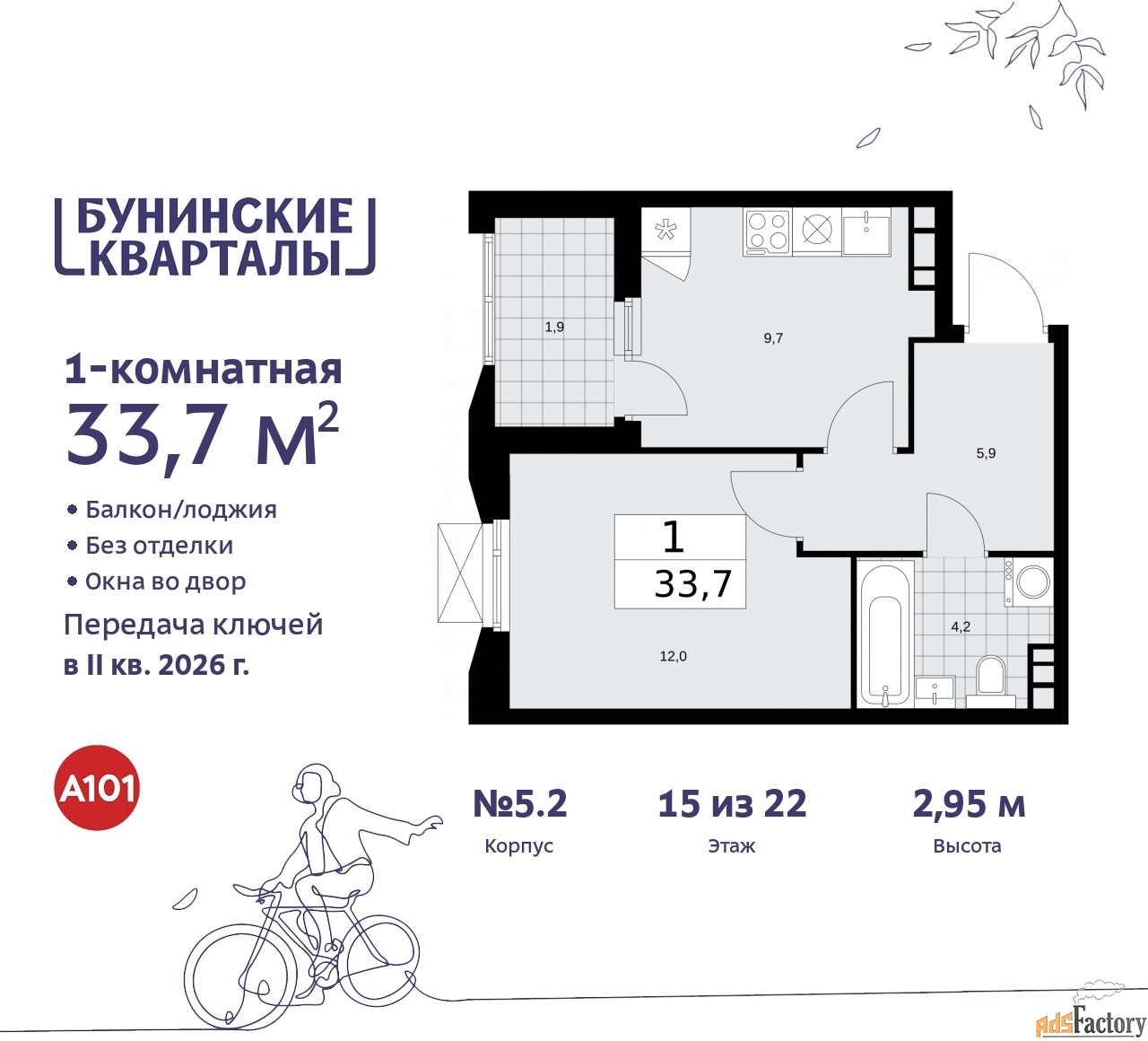 Квартира находится в корпусе 5.2. Дом монолитный, одноподъездный, высотой 22 этажа. На этаже 9 квартир. В подъезде 1 пассажирский и 2 грузовых лифта. Начало строительства - 4 квартал 2023 года. Окончание строительства - 2 квартал 2026 года. Оформление сделки по договору долевого участия.