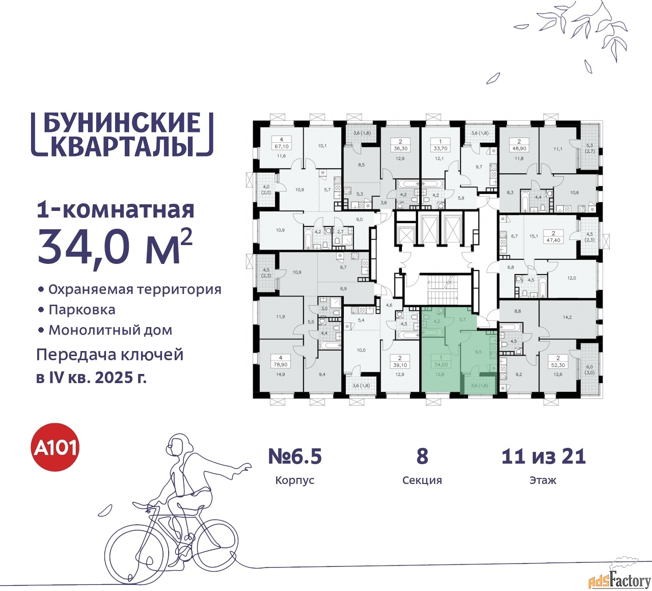 | Этажность здания | 21 |