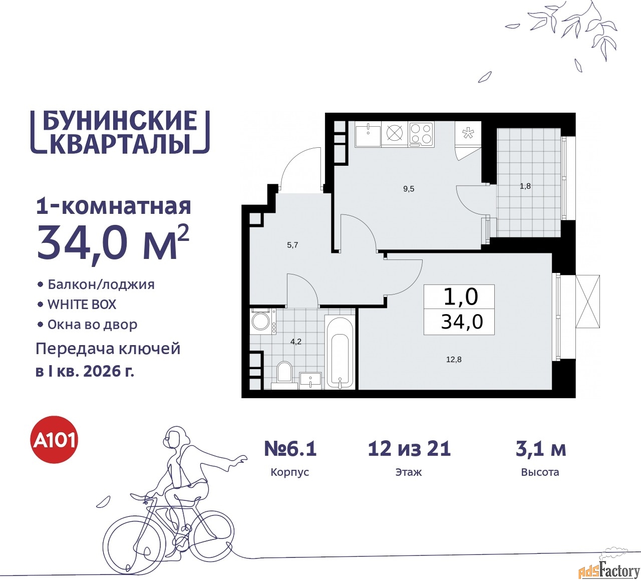 | Общая площадь (кв.м) | 34 |