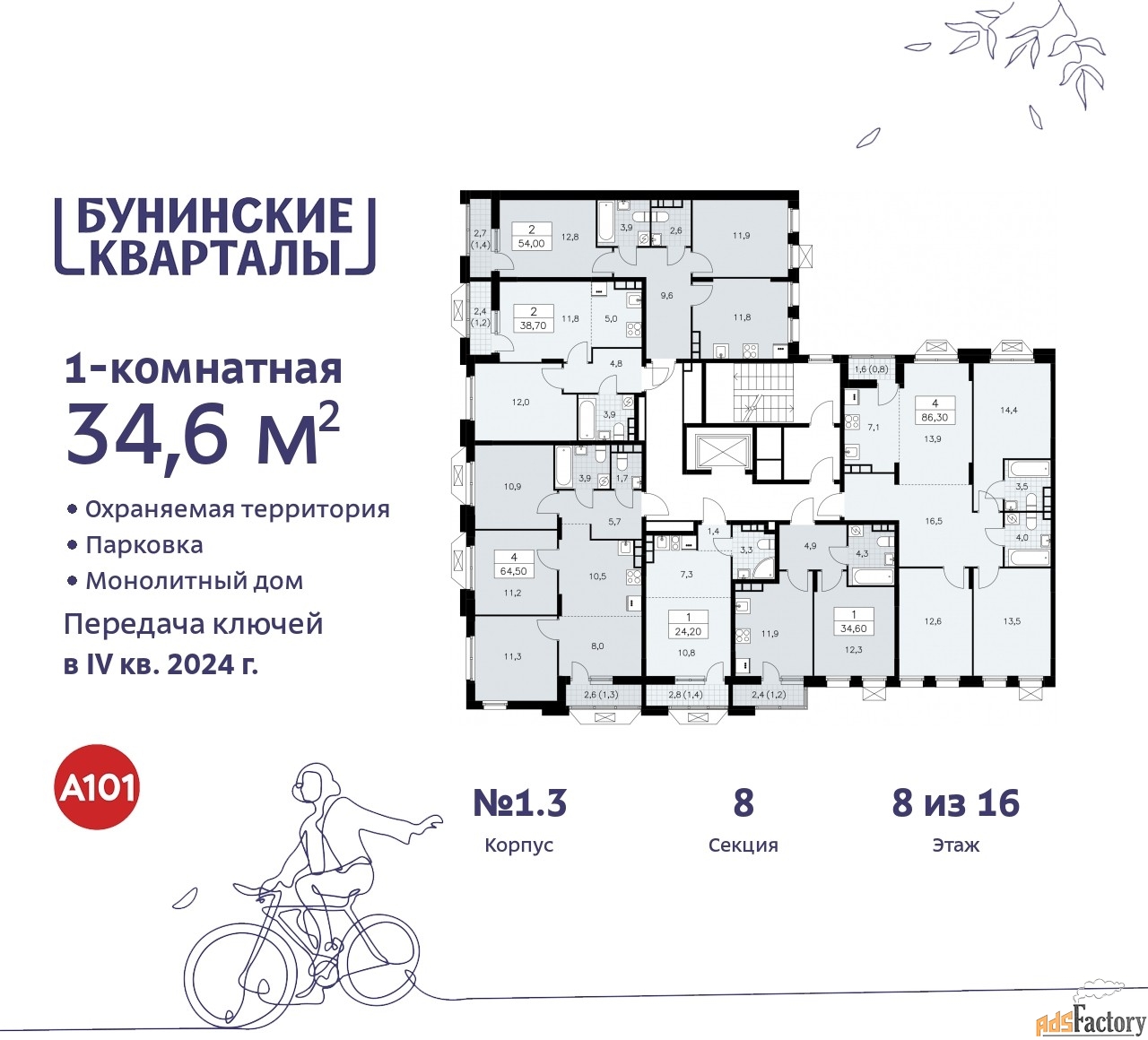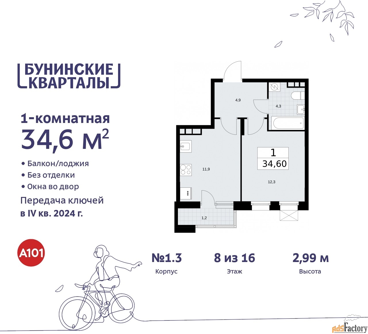 Дом монолитный, многоподъездный, переменной этажности, от 9 до 16 этажей. Квартира находится в 3-й секции высотой 9 этажей в корпусе 1.3. На этаже 6 квартир. В подъезде 1 грузовой лифт. Начало строительства - 3 квартал 2022 года. На сегодняшний день строительство окончено, дом сдан в 1 квартале 2025 года. Оформление сделки по договору купли-продажи.