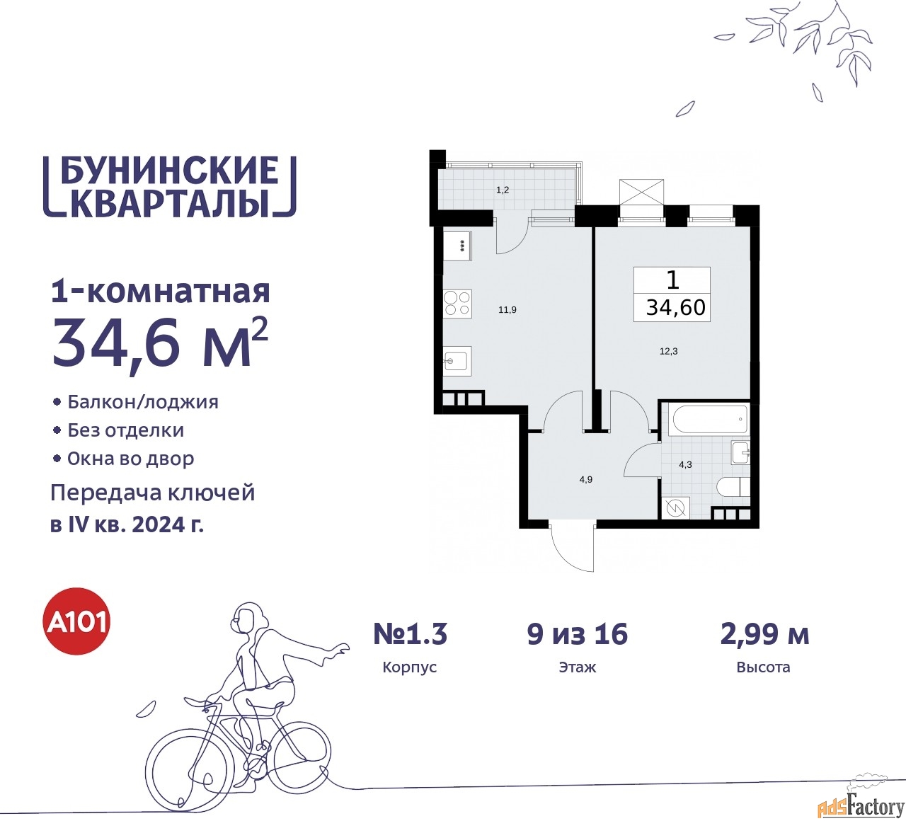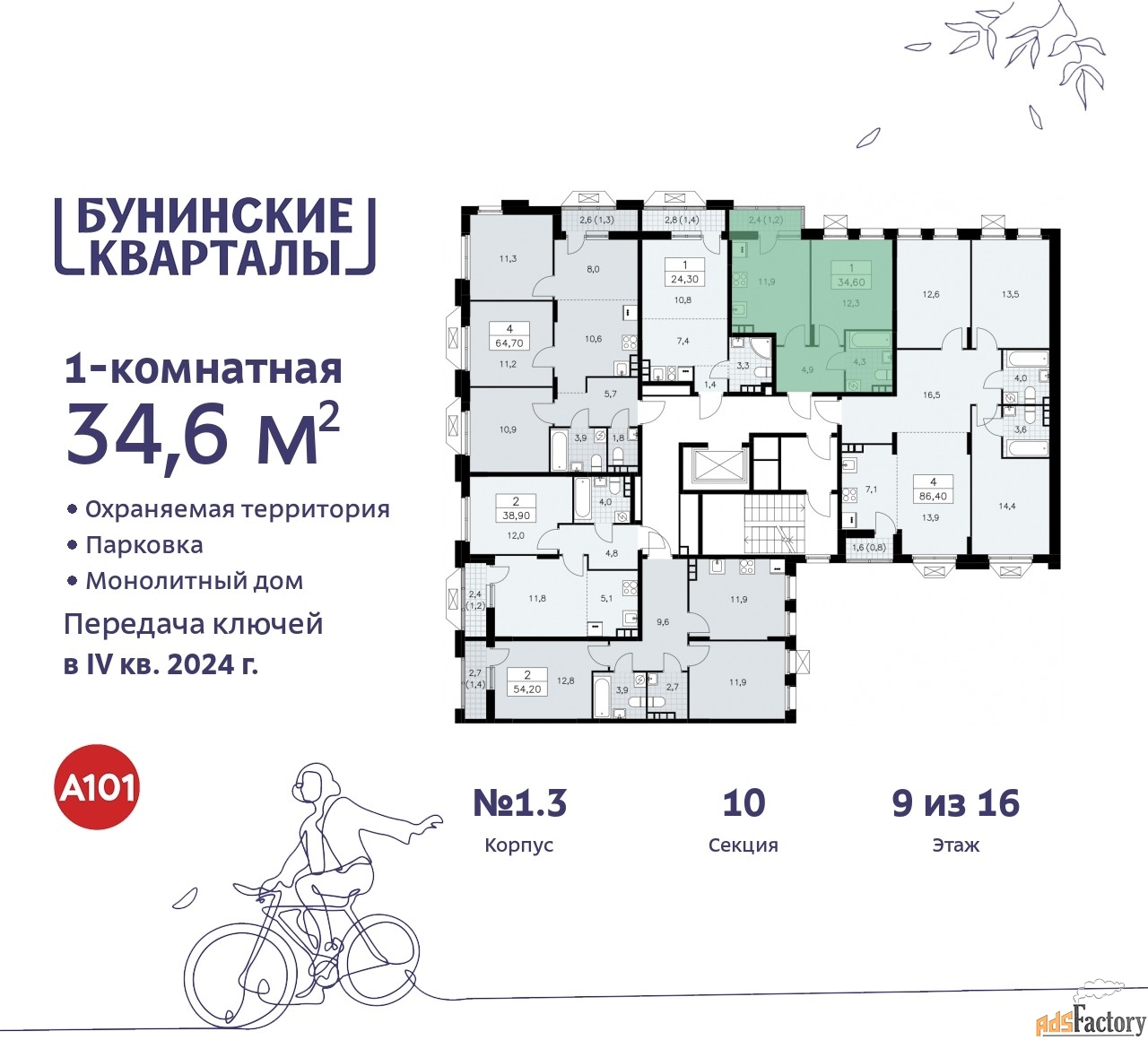 Дом монолитный, многоподъездный, переменной этажности, от 9 до 16 этажей. Квартира находится в 5-й секции высотой 9 этажей в корпусе 1.3. На этаже 6 квартир. В подъезде 1 грузовой лифт. Начало строительства - 3 квартал 2022 года. На сегодняшний день строительство завершено, дом сдан в 1 квартале 2025 года. Оформление сделки по договору купли-продажи.