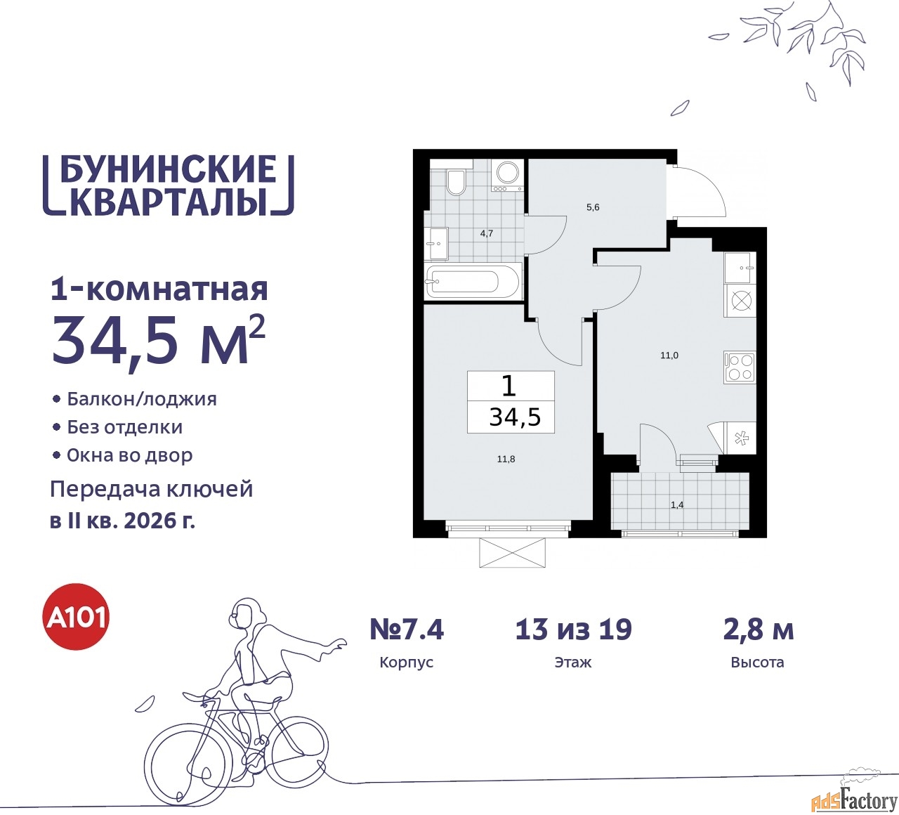 Квартира находится в корпусе 7.4. Дом монолитный, одноподъездный, высотой 19 этажей. На этаже 10 квартир. В подъезде 1 пассажирский и 1 грузовой лифт. Начало строительства - 4 квартал 2023 года. Окончание строительства - 2 квартал 2026 года. Оформление сделки по договору долевого участия.