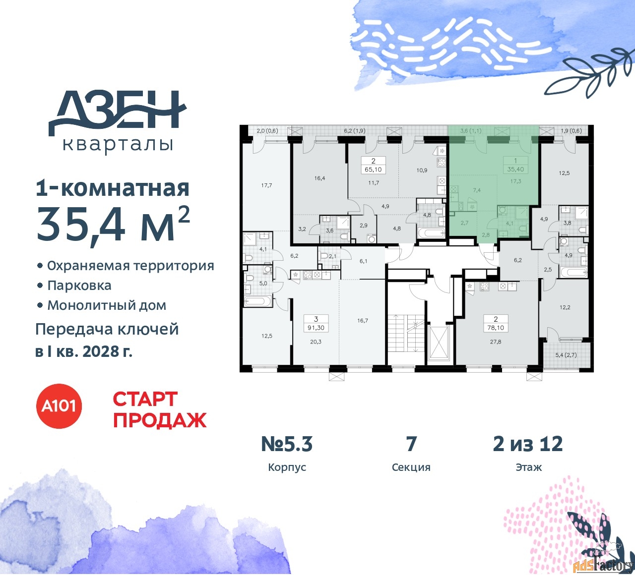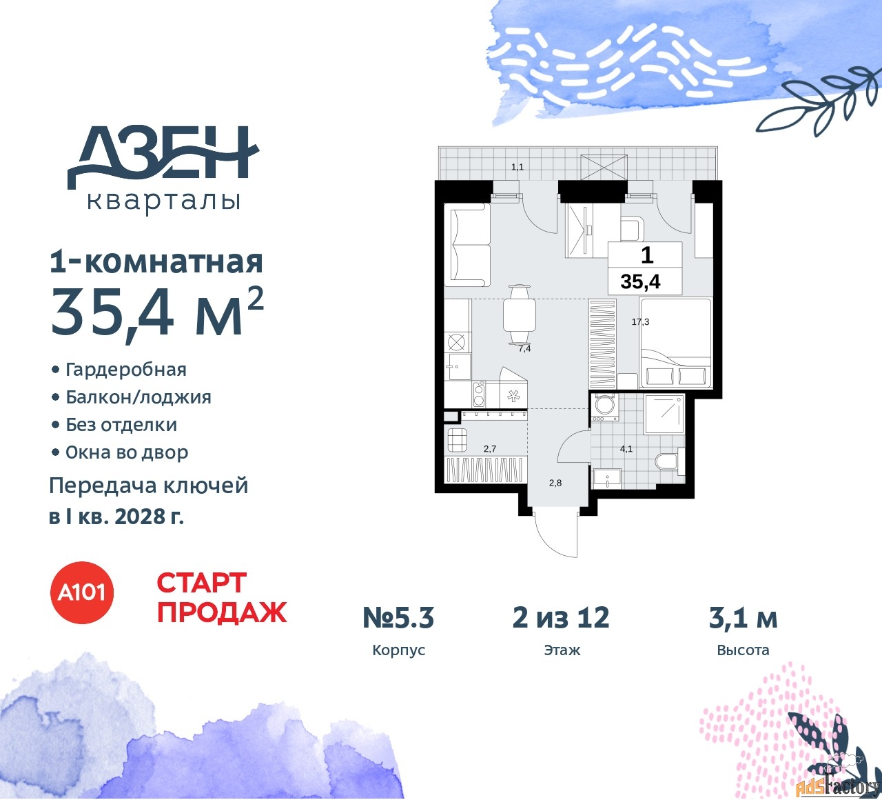 | Общая площадь (кв.м) | 35.4 |