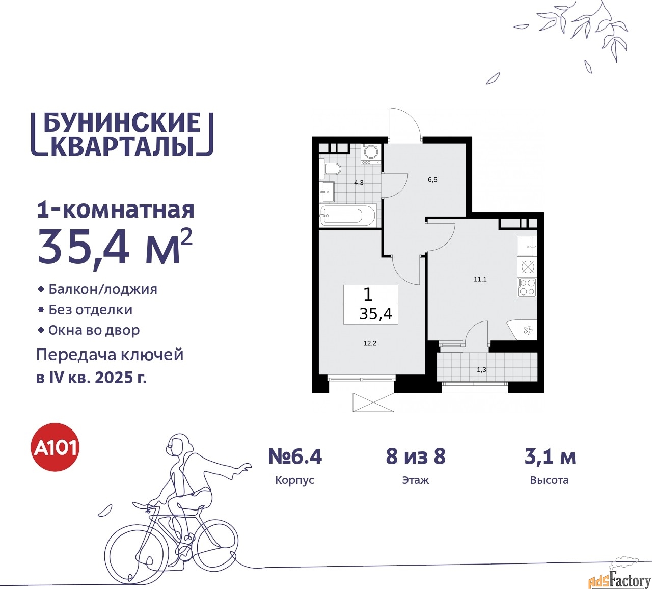 Дом монолитный, двухподъездный, высотой 8 этажей. Квартира находится во 2-й секции в корпусе бизнес-класса 6.4. На этаже 6 квартир. В подъезде 1 грузовой лифт. Начало строительства - 3 квартал 2023 года. Окончание строительства - 4 квартал 2025 года. Оформление сделки по договору долевого участия.