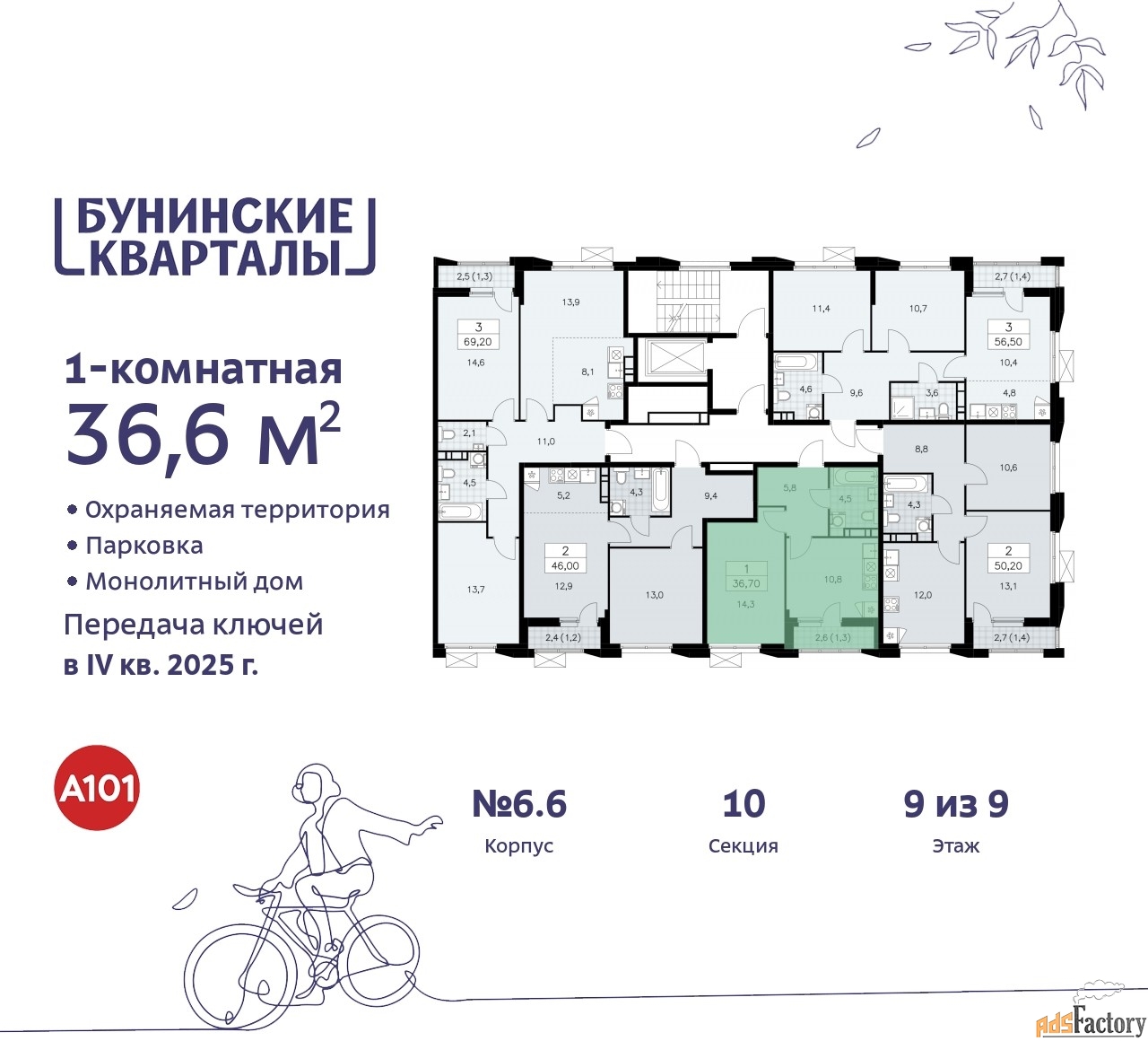 Дом монолитный, двухподъездный, высотой 9 этажей. Квартира находится во 2-й секции в корпусе бизнес-класса 6.6. На этаже 5 квартир. В подъезде 1 грузовой лифт. Начало строительства - 3 квартал 2023 года. Окончание строительства - 4 квартал 2025 года. Оформление сделки по договору долевого участия.