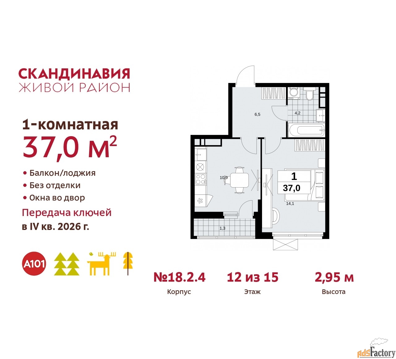 Дом монолитный, двухподъездный, переменной этажности, от 9 до 15 этажей. Квартира находится во 2-й секции высотой 15 этажей в корпусе 2.18.2.4. На этаже 5 квартир. В подъезде 1 пассажирский и 1 грузовой лифт. Начало строительства - 1 квартал 2024 года. Окончание строительства - 4 квартал 2026 года. Оформление сделки по договору долевого участия.